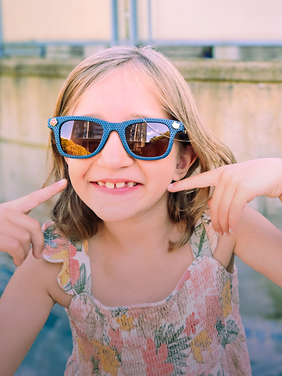 Make it yours! A versatile, durable yet lightweight frame designed for playful customization with KITSbitz™ charms. These polarized sunglases are available in five beautiful colorways, and they can be easily converted into prescription optical glasses with clear or tinted lenses. Sized for older children ages 6-12.
