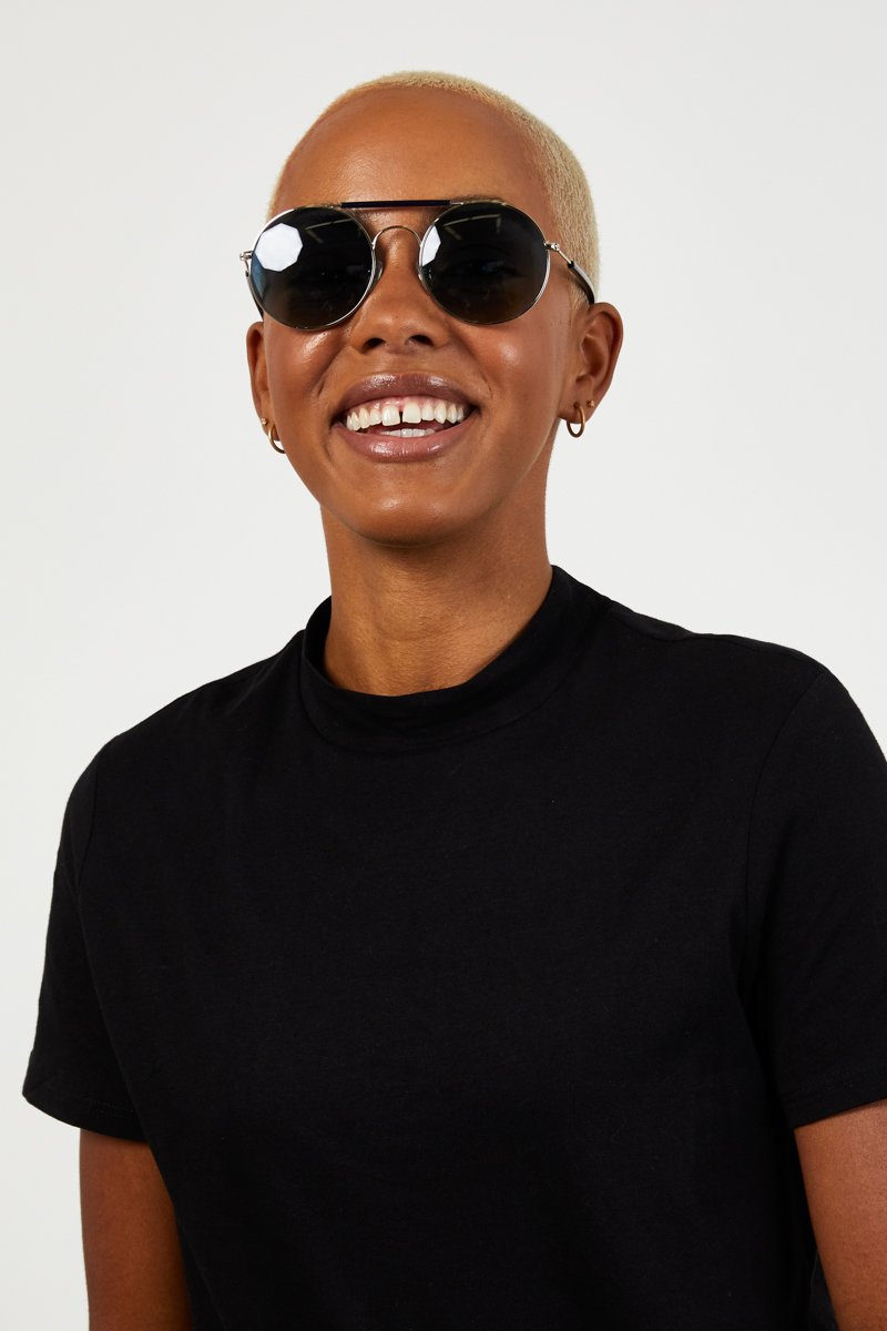 Designed in Stockholm, these Congo sunglasses offer a great curvy round look with a sharp, straight contrast in the aviator bridge.