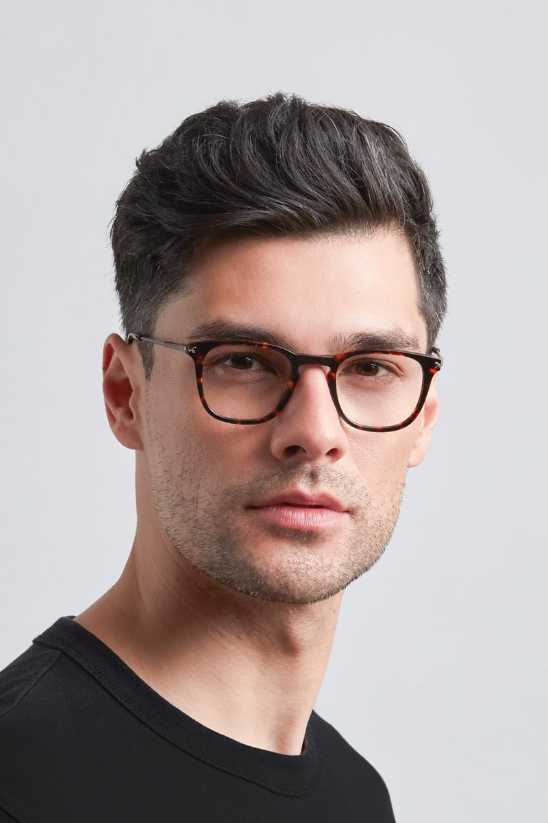 - Combining lightweight and hypoallergenic acetate front with metal temples