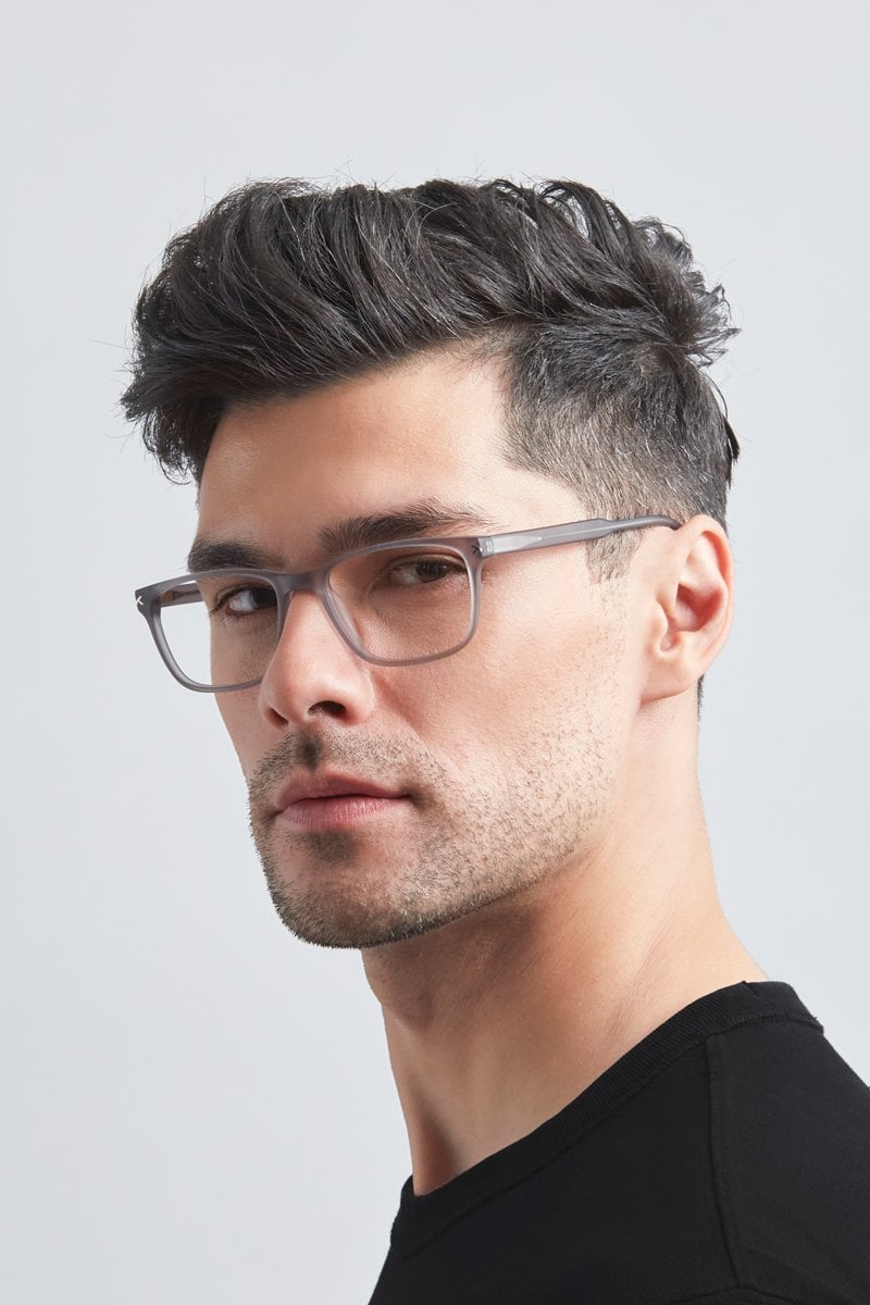 The Pollux glasses have a thin rectangular design that compliments soft facial features. Glossy black acetate is divided by silver endcaps, and spring hinges provide a great fit. Please note these frames are best suited to those with average/medium sized faces.