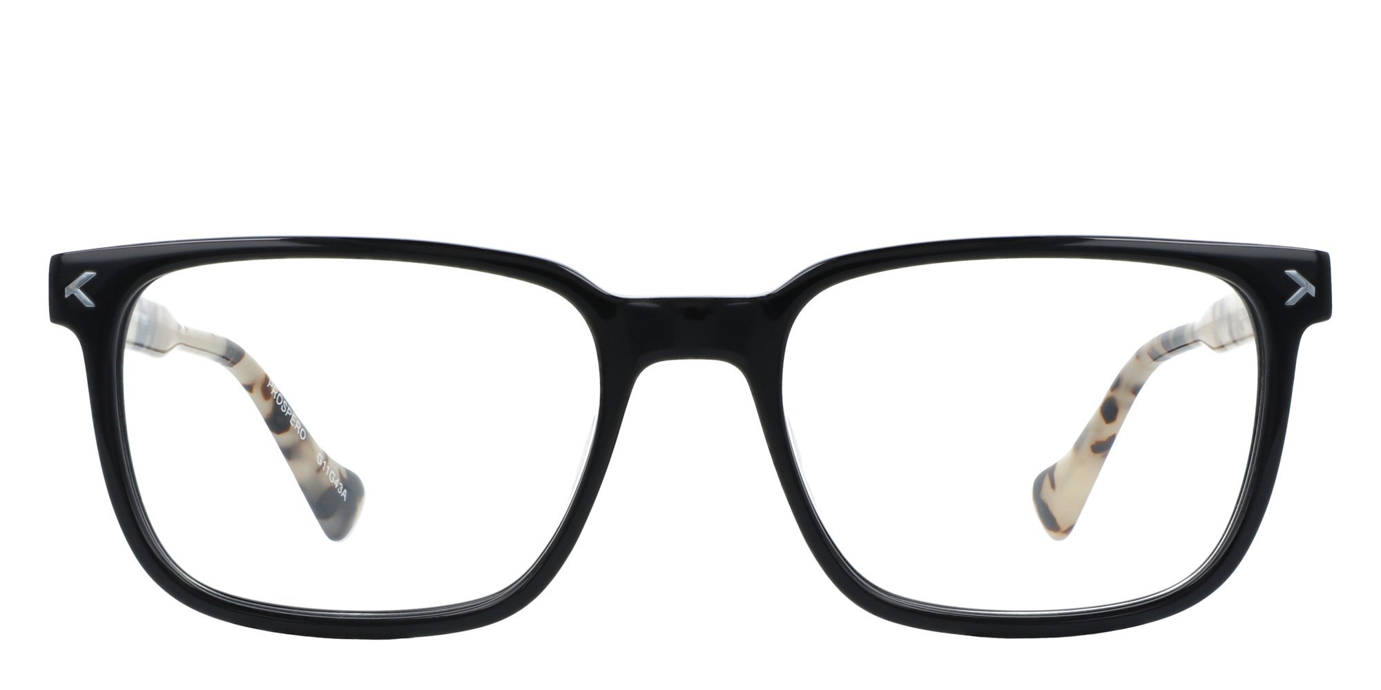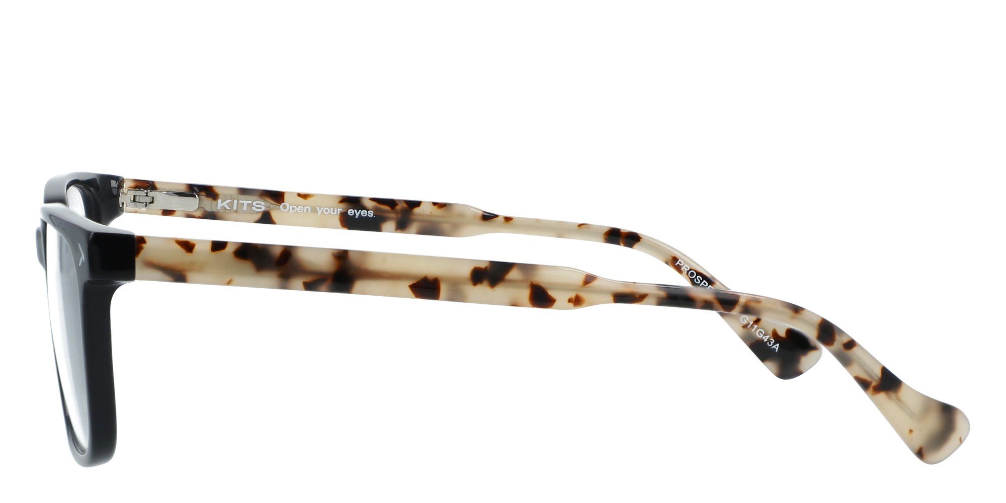 These Prospero eyeglasses have a slender square style that looks great on many different face shapes. The black front is paired with white tortoise temples and separated by gunmetal caps.