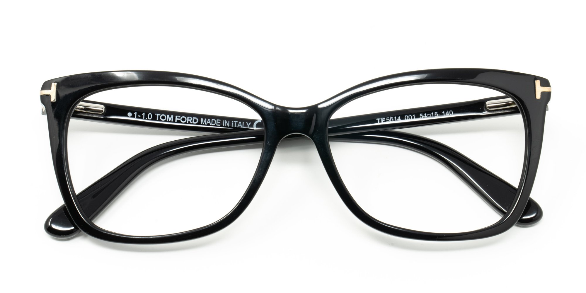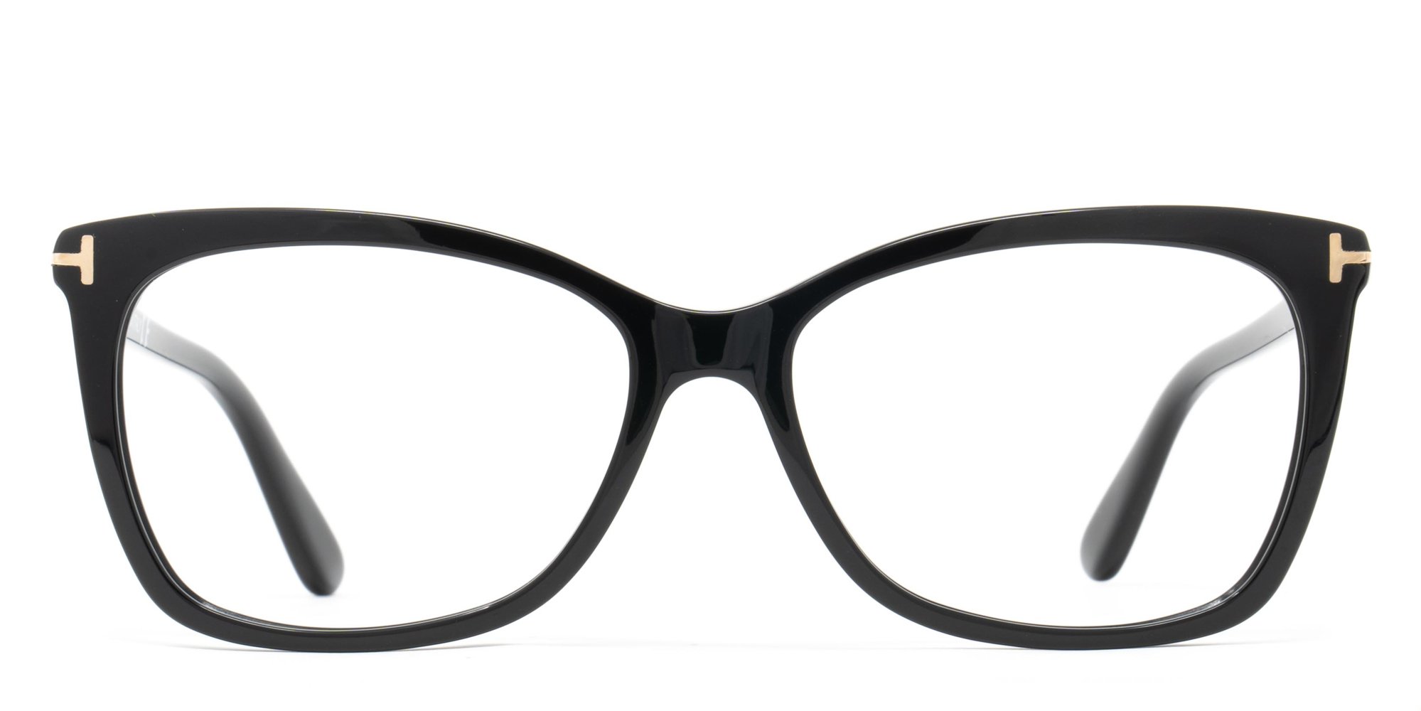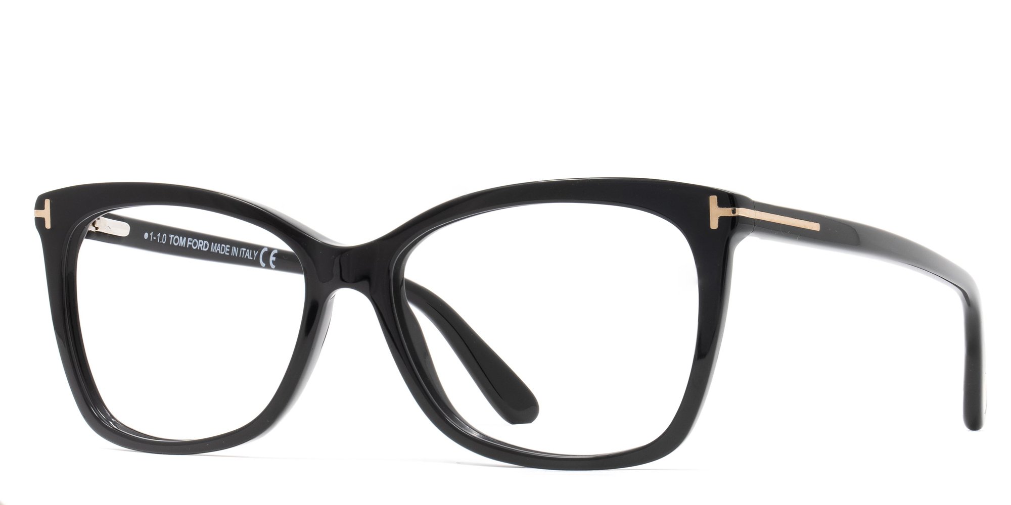 This playful spin on a classic cateye shape features angular lines and a dramticaly upswept browline. Tom Ford's iconic T bar elegantly accents the all Italian acetate frame.