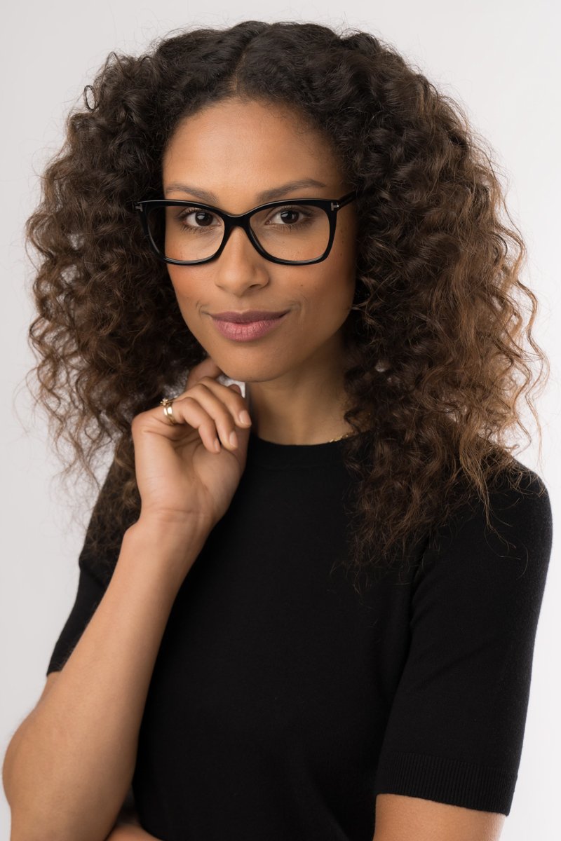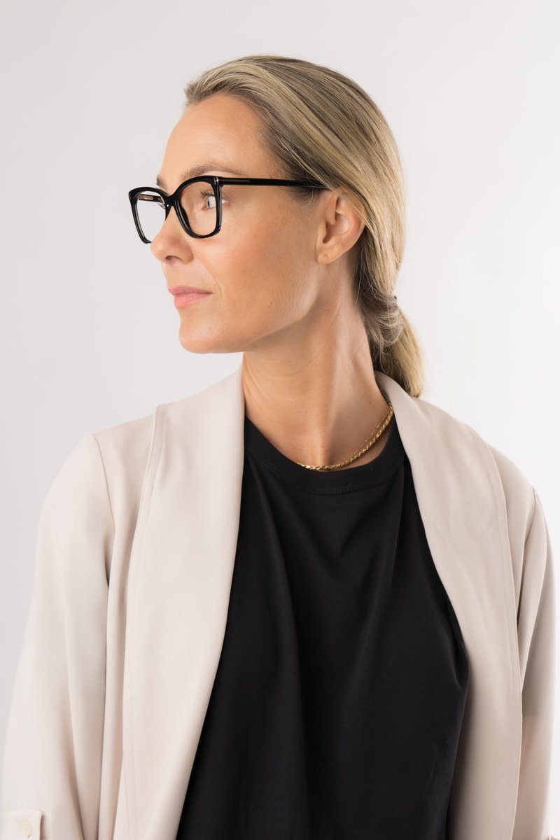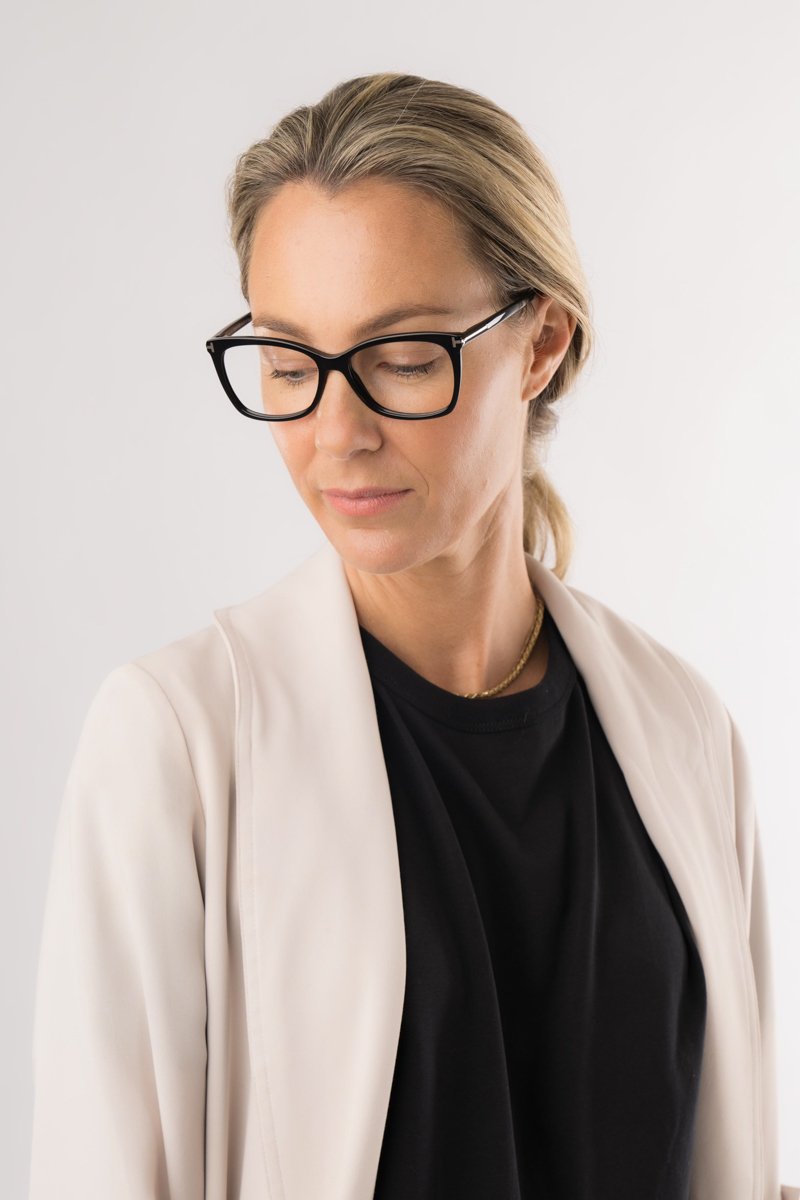 This playful spin on a classic cateye shape features angular lines and a dramticaly upswept browline. Tom Ford's iconic T bar elegantly accents the all Italian acetate frame.