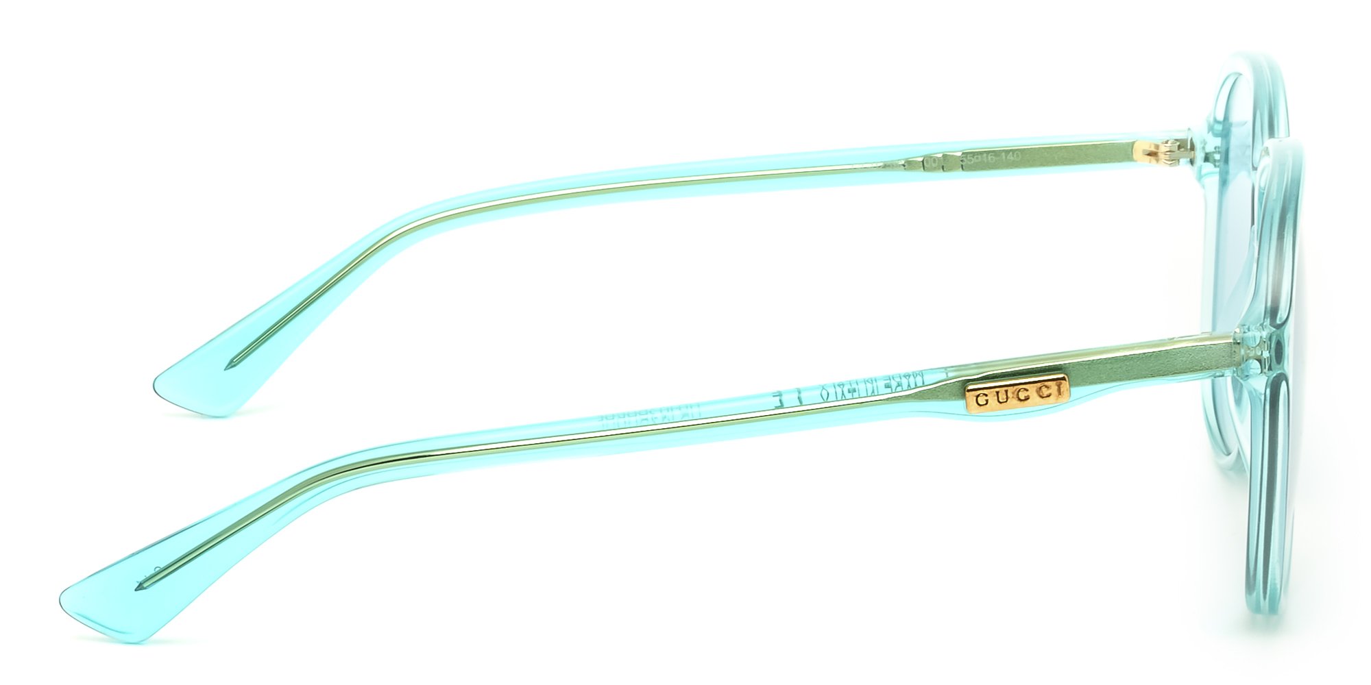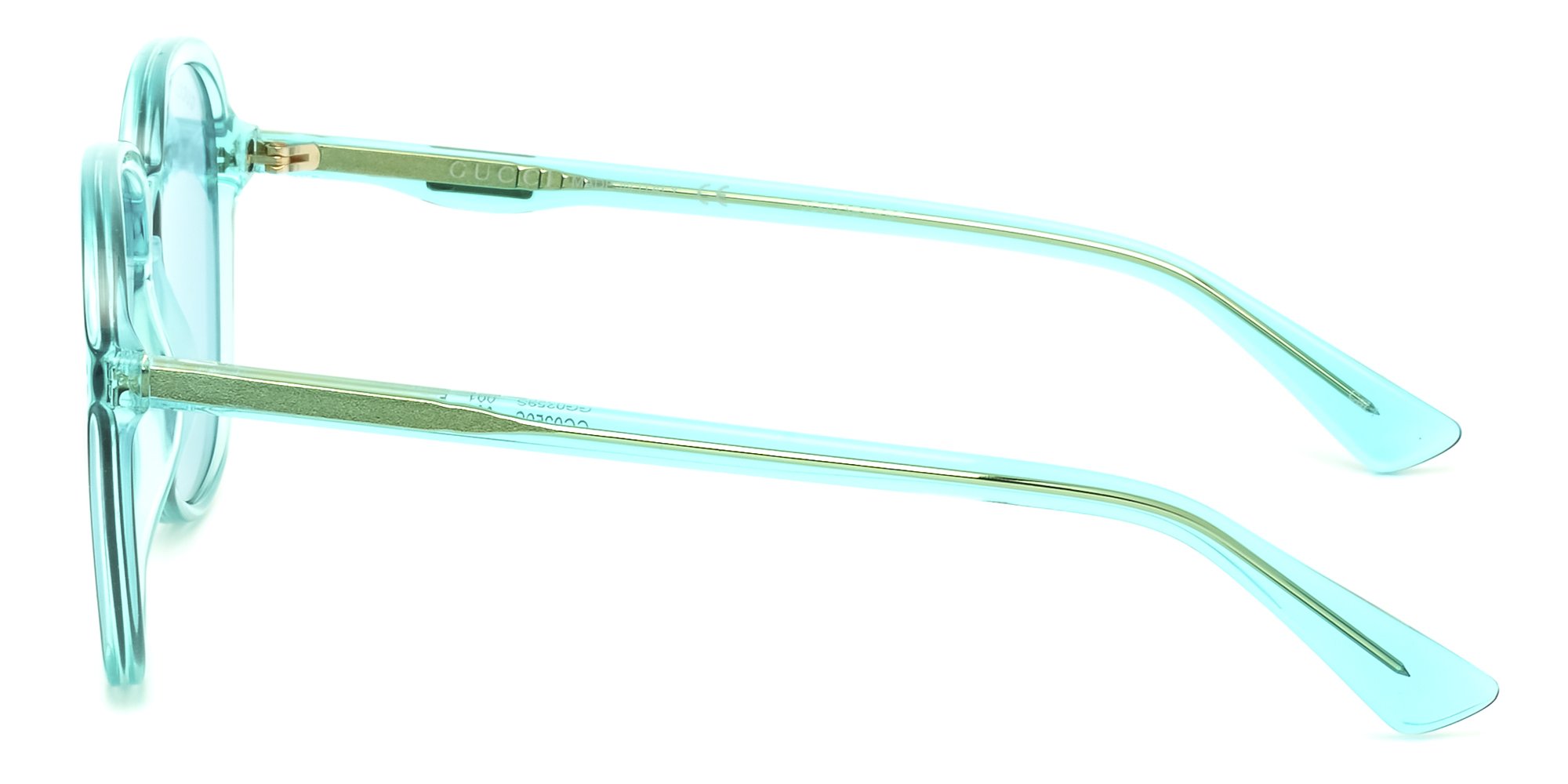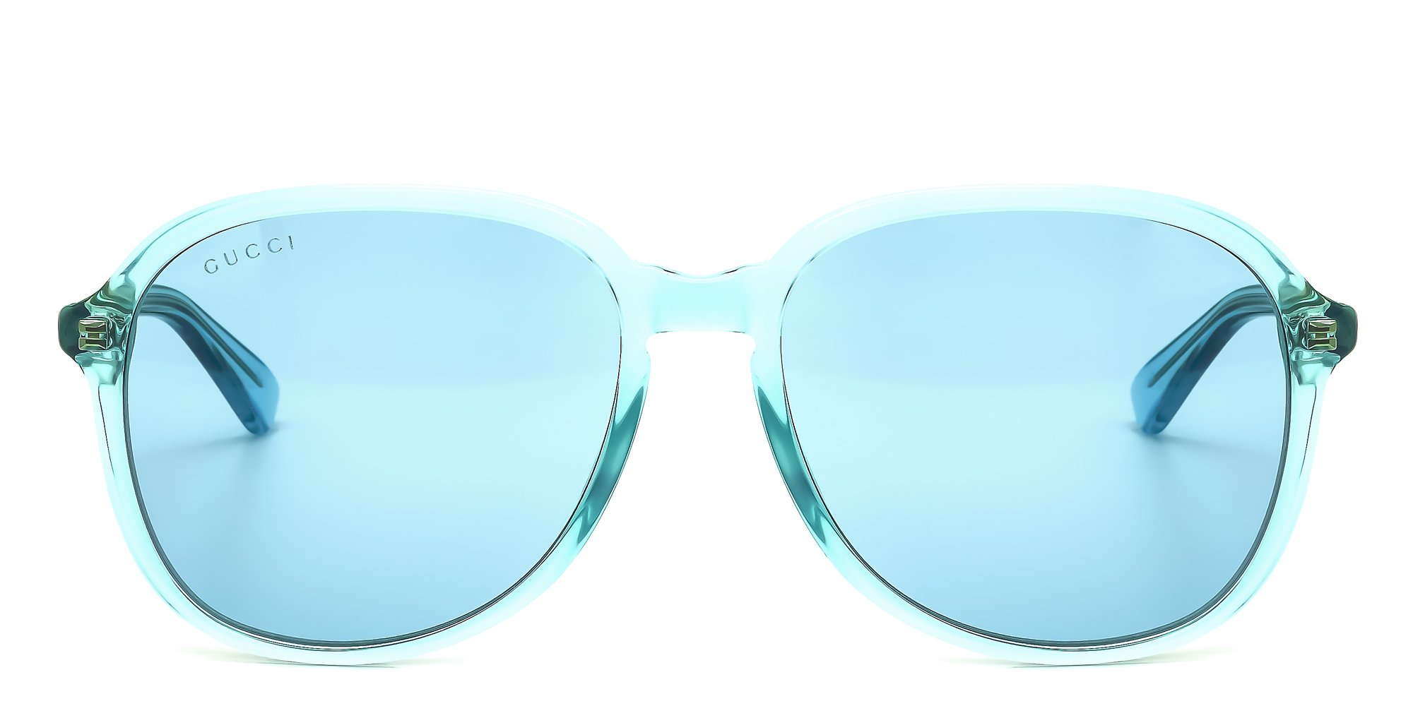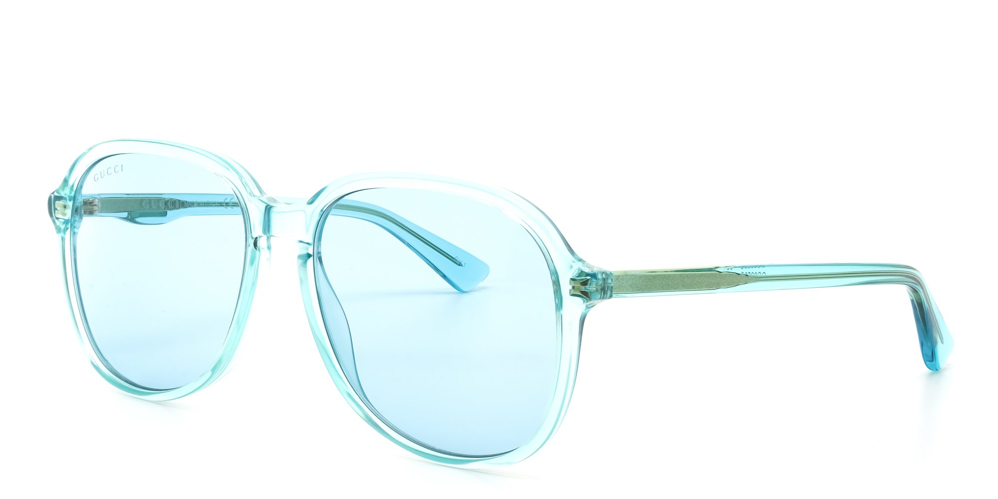 The aqua toned acetate and matching lenses of Guccis GG0259S sunglasses has us dreaming of lazy days on sandy beaches far away on sunny islands. The pilot inspired shape features an elongated lens that adds length to fuller faces. Luxurious Italian acetate paired with simple, elegant design ensures this pair remains a timeless showstopper.