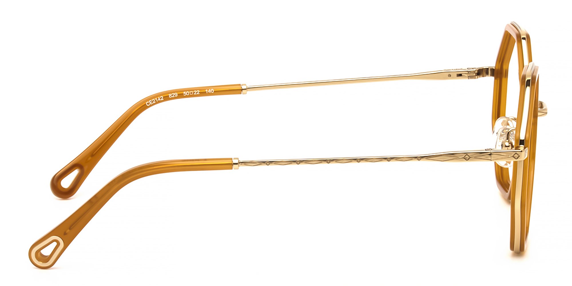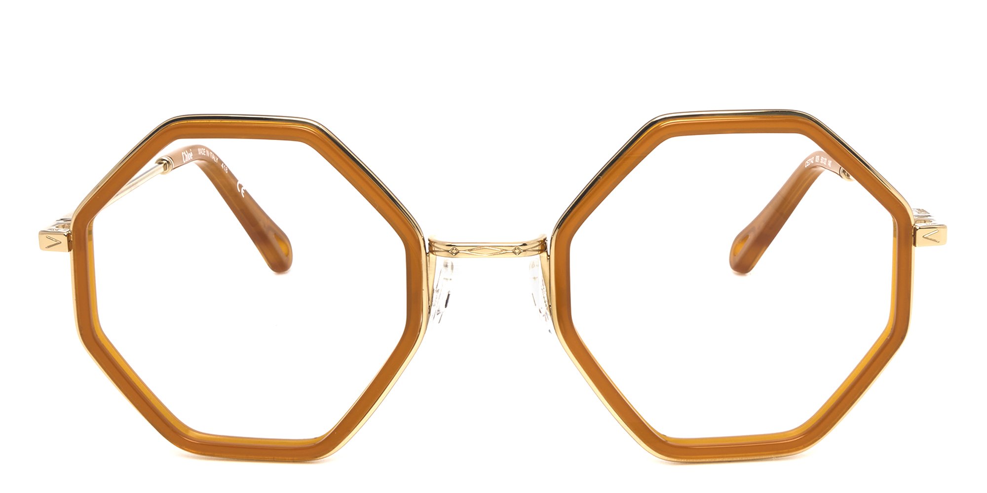 Indulge a flair for the dramatic with these Chloe CE2142 glasses. The hypoallergenic acetate and metal construction resists flex and corrosion, while keeping the glasses gentle on your skin. These ultra-thin frames with a single bridge are lightweight and sophisticated. Adjustable silicone nose pads and ergonomic temple ends enhance your comfort and ensure a good fit. These hexagonal frames add definition to a round or oval face.