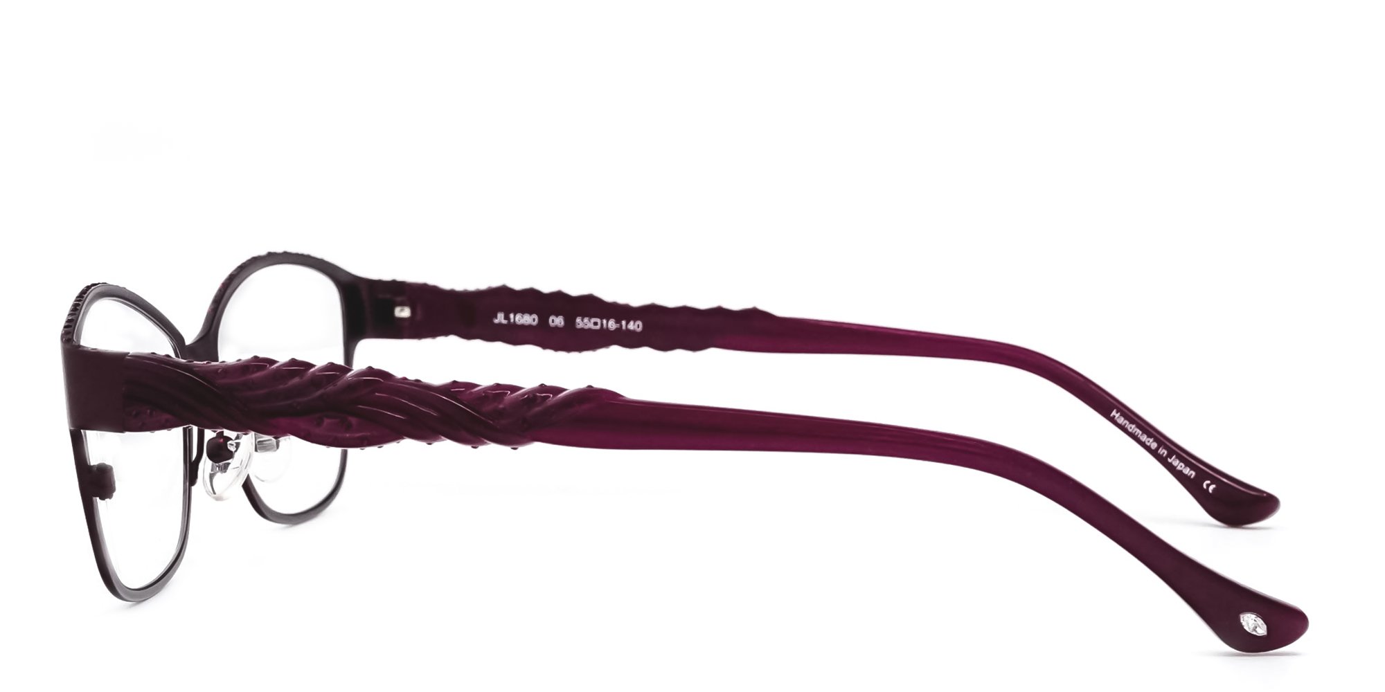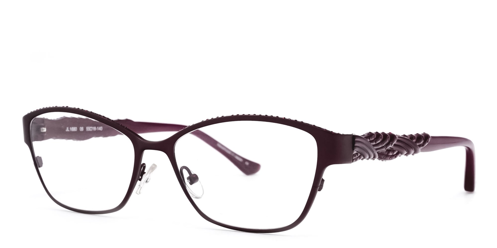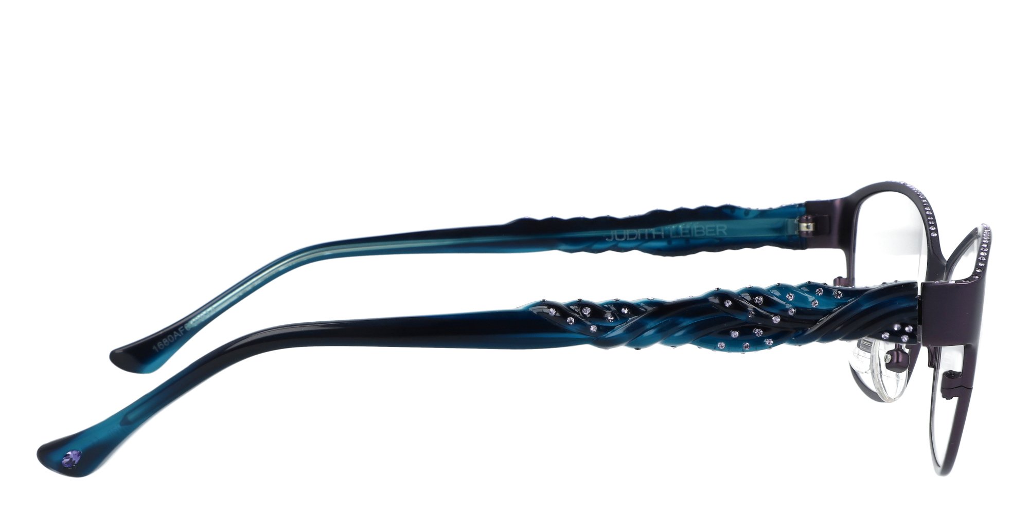 Make a bold fashion statement with Judith Leiber JL 1680 frames for women. The acetate frames of these eyeglasses are lightweight for added comfort, and boast impressive flexibility and durability. An embossed design on the bridge and rivets on the brow and temple ends provide subtle aesthetic appeal.