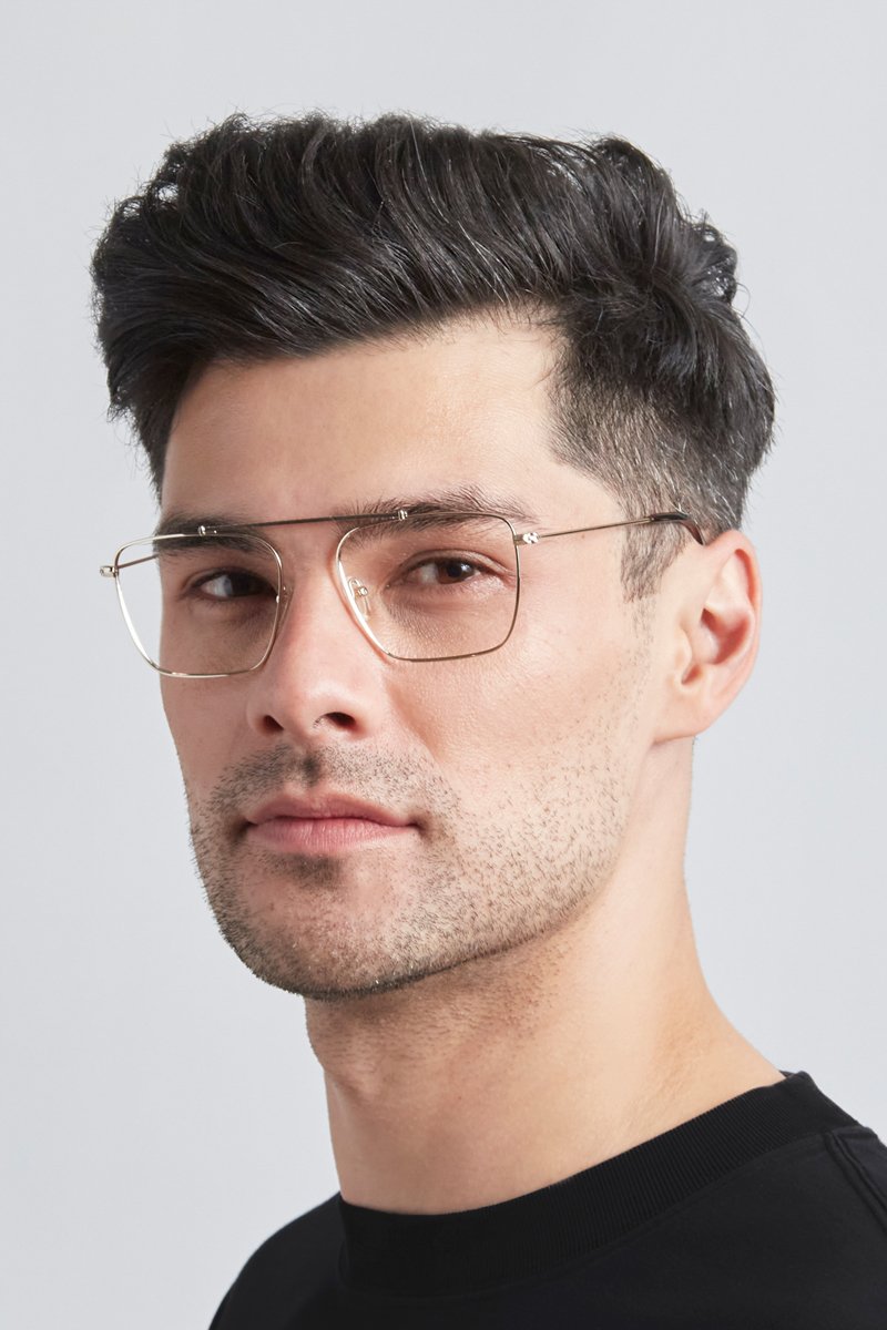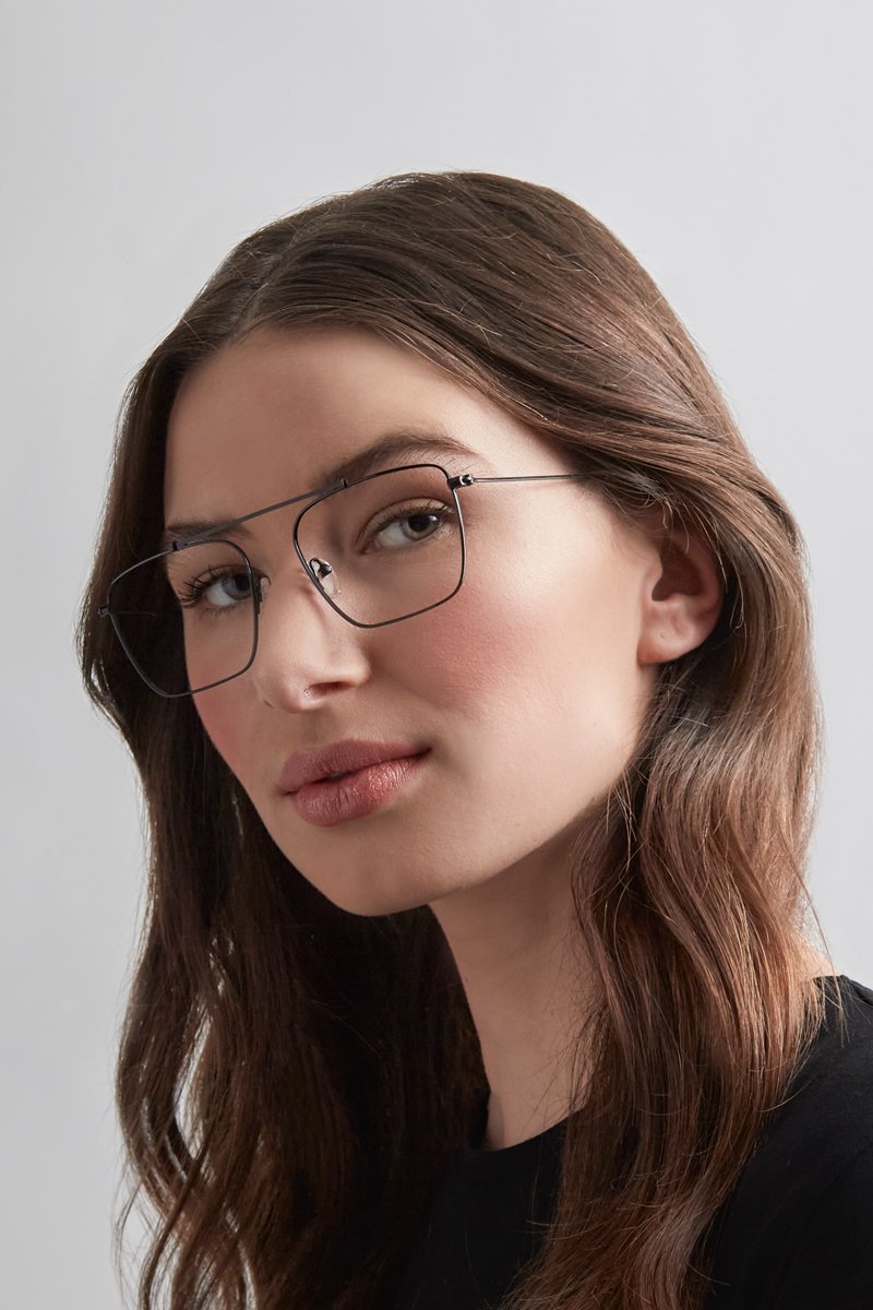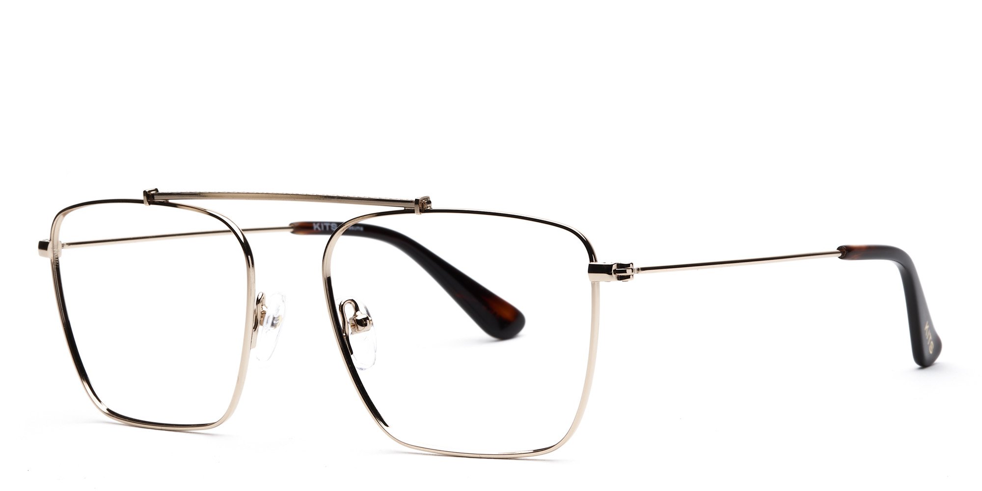 Kits offers a modern take on the classic aviator in these Eriksson eyeglasses. Constructed without a nose bridge, high browline and flexible silicone nose pads, this design lends a retro look and the slim, full rim frames are made in a strong, lightweight metal that won't weigh you down. Please note these frames are best suited to those with average/medium sized faces.