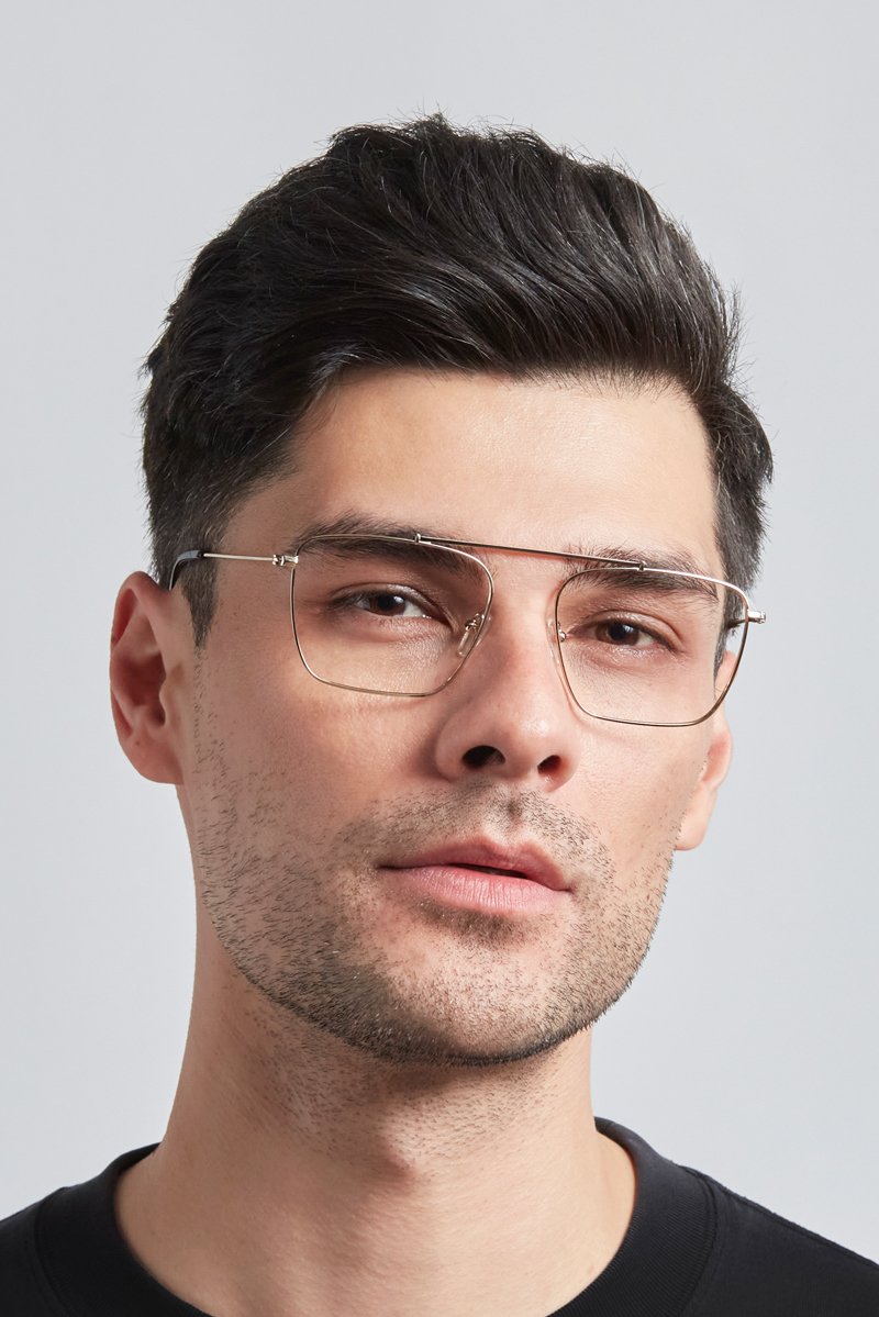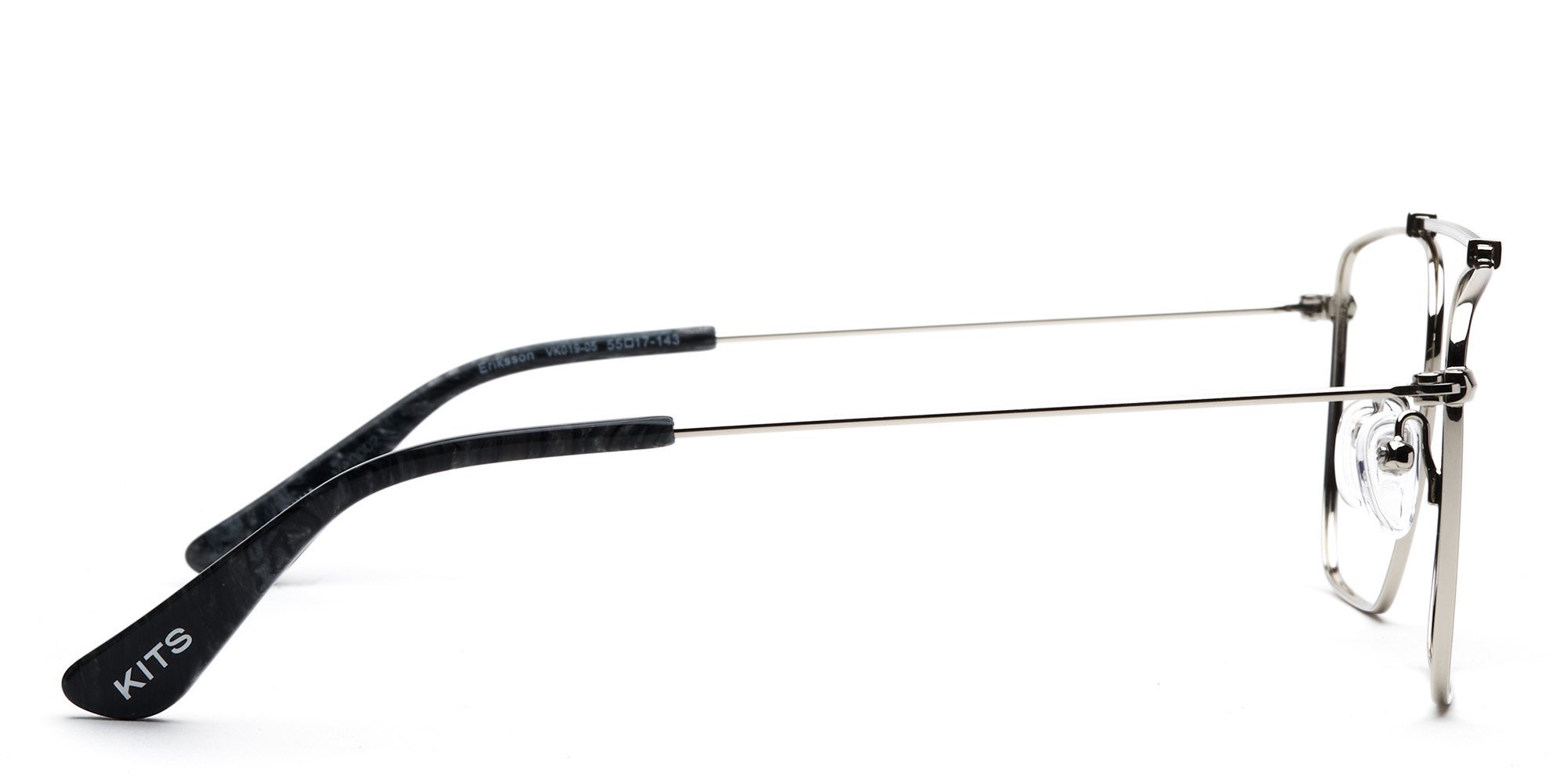 Kits offers a modern take on the classic aviator in these Eriksson eyeglasses. Constructed without a nose bridge, high browline and flexible silicone nose pads, this design lends a retro look and the slim, full rim frames are made in a strong, lightweight metal that won't weigh you down. Please note these frames are best suited to those with average/medium sized faces.