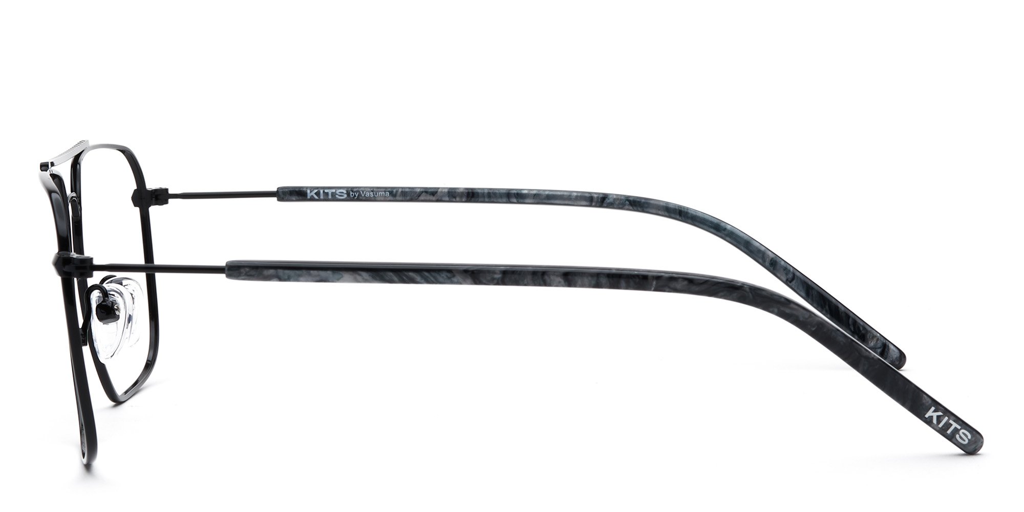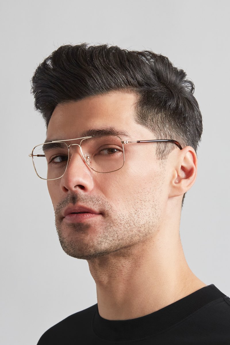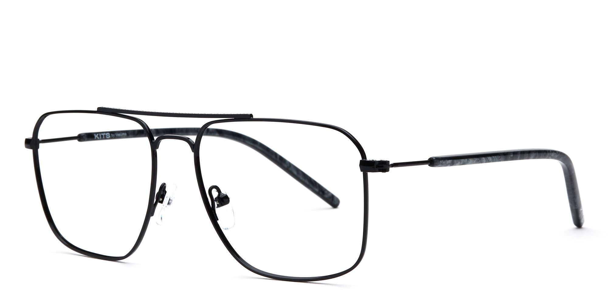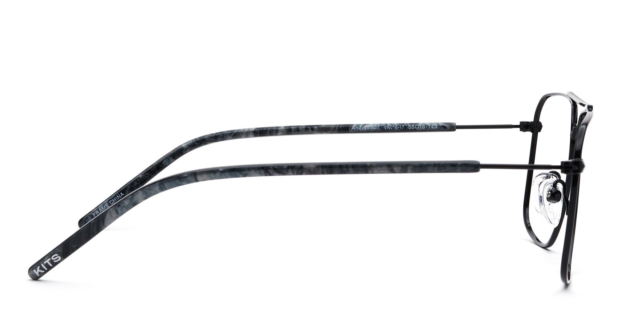 Up your eyewear game with these handsome Andersson eyeglasses from Kits. The sporty frames boast an aviator silhouette with the classic double bridge and clean lines. The streamlined, full rim frames are crafted in strong, durable, and corrosion-resistant metal. The ultra slim temples are coated over the ears for comfort and feature wide tips for added stability. Please note these frames fit small and are best suited to those with petite faces.