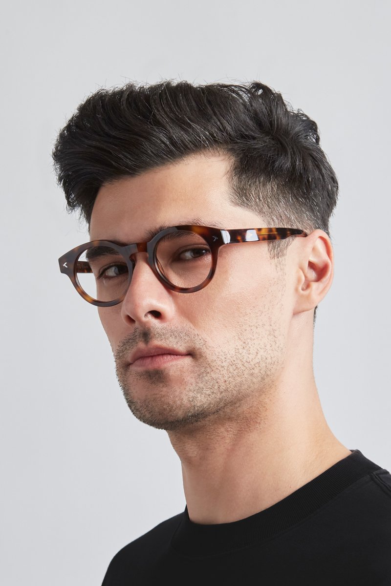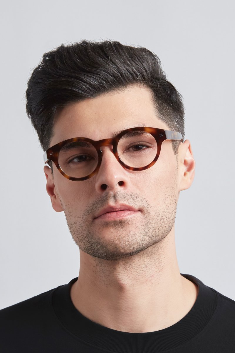 The Persson eyeglasses speak to the wearer who embraces modern design but enjoys a little old school nostalgia. The frames are made in lightweight but sturdy performance acetate. A keyhole bridge distributes the weight of the frames evenly across the face to reduce pressure for a comfortable feel. The sleek temples widen at the tips for stability behind the ears and the signature branding on the wingtips adds designer appeal. Please note these frames fit large and are best suited to those with wider faces.