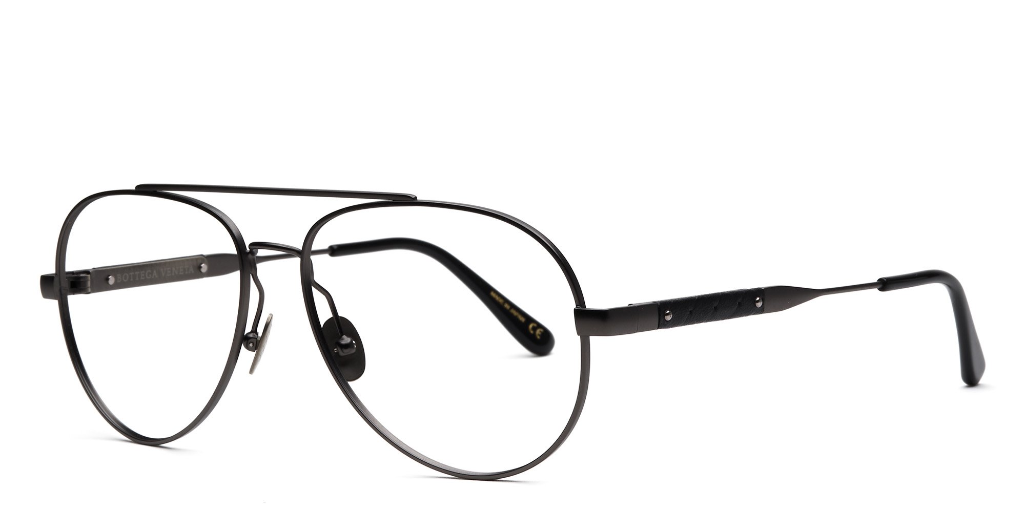 Bottega Veneta offers a classic silhouette in the BV0042O . The slim aviator style frames are made in a sturdy, corrosion resistant metal. The slim temples curve inward for stability, and come with coated tips for comfort behind the ears. Intricate detailing at the brow end of the temple and a distinctive upper bridge add elegance. Elevate your look and protect your eyes on the job or off the clock when you slip on the BV0042O from Bottega Veneta.