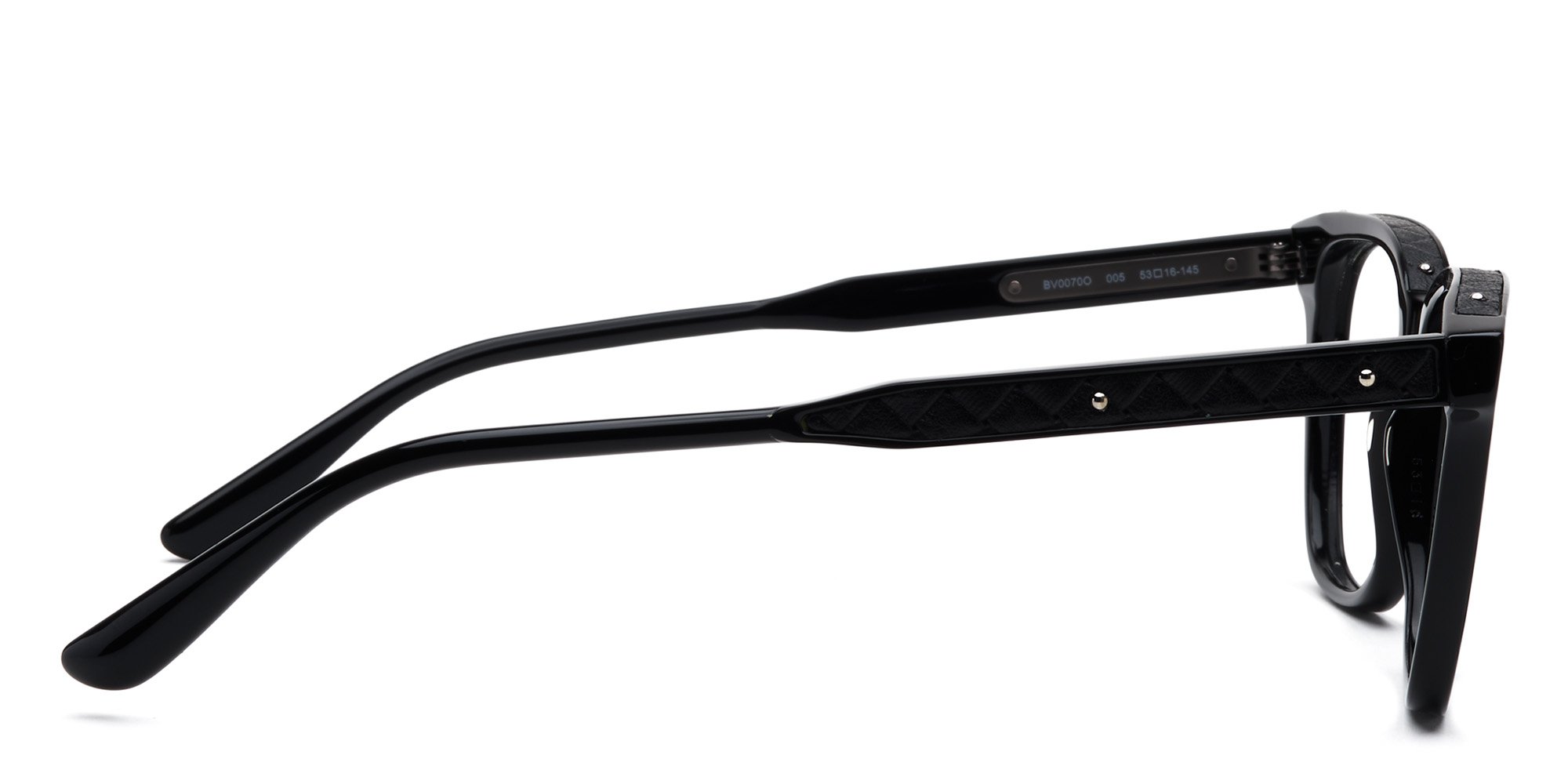 The BV0070O eyeglasses by Bottega Veneta speak to the wearer who embraces modern design but enjoys a little old school nostalgia. The cat eye frames are made in lightweight but sturdy acetate. A saddle bridge distributes the weight of the frames evenly across the face to reduce pressure for a comfortable feel. The sleek temples widen at the tips for stability behind the ears. Sturdy barrel hinges retain their initial balance for a comfortable fit, keeping these Bottega Veneta glasses in place throughout your busy days.