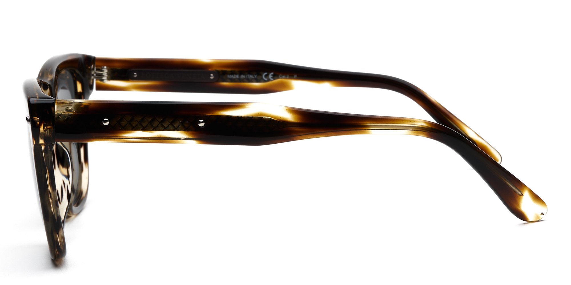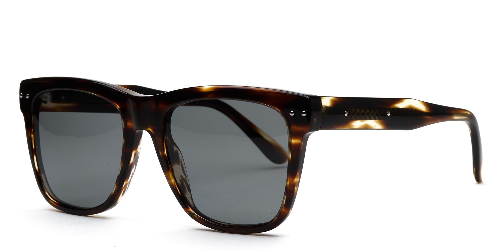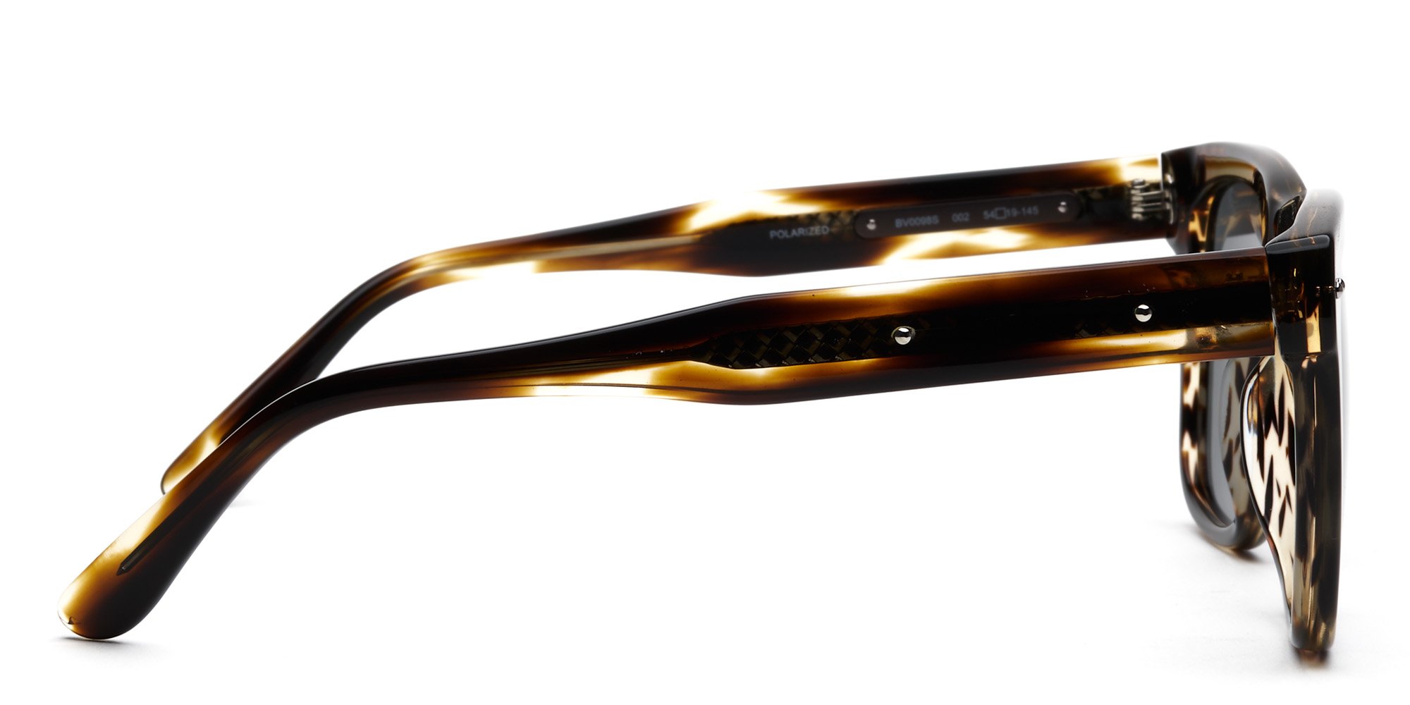 The BV0098S sunglasses from Bottega Veneta speak to the wearer who appreciates traditional style with a sporty flair. The rectangular rims are crafted from lightweight acetate with a saddle bridge for a bold and confident look. The robust wire core temples are molded over the ears for comfort, and widen at the tips for stability. These sunglasses are created with an alternate fit design that suits wearers with high cheekbones and a wide nose bridge, preventing the glasses from sliding and ensuring the frames rest on the nose, not the cheekbones.