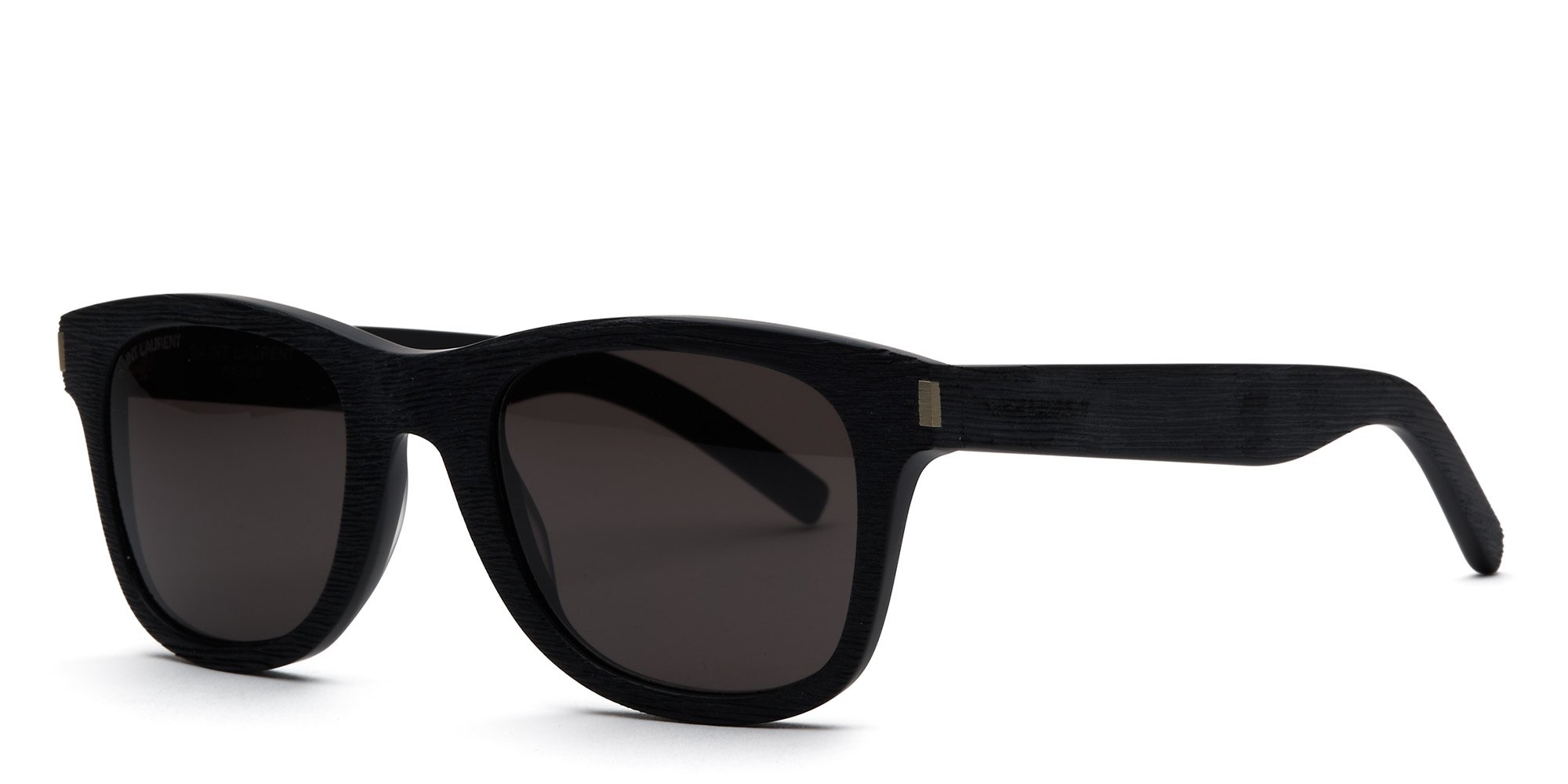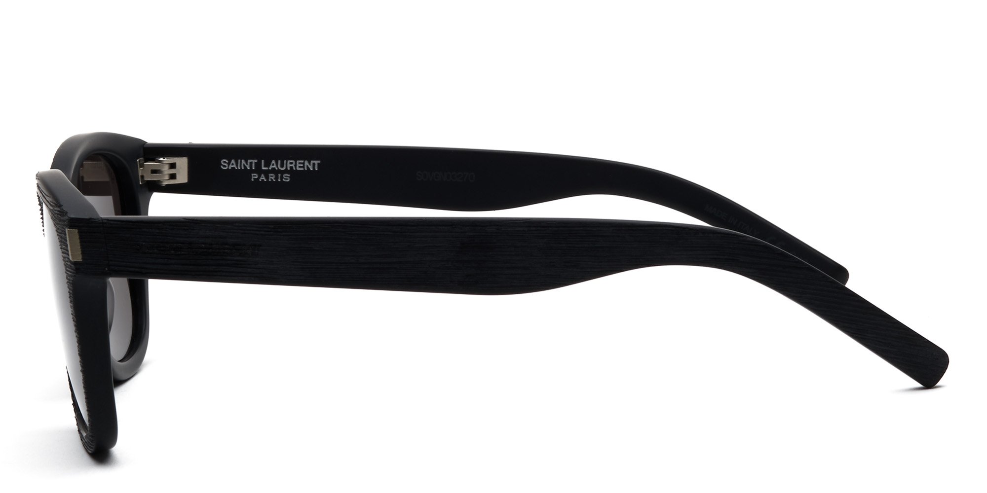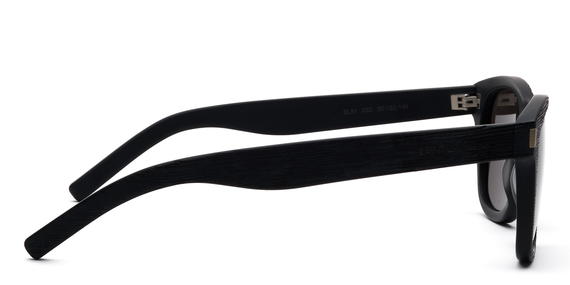 The Saint Laurent SL 51 sunglasses demonstrate your dedication to a timeless fashion sense. The latest evolution of a classic look, these frames feature certain trademarks of the signature style, like distinctive rivets on the wingtips. A sturdy sadle nose bridge redistributes weight toward the sides of the nose, reducing pressure for added comfort. Composed of acetate, a plant-based material, these frames are lightweight, guaranteeing lasting comfort. Temples connect with barrel hinges that are durable and adjust easily. Express your classic aesthetic with these acetate frame sunglasses.