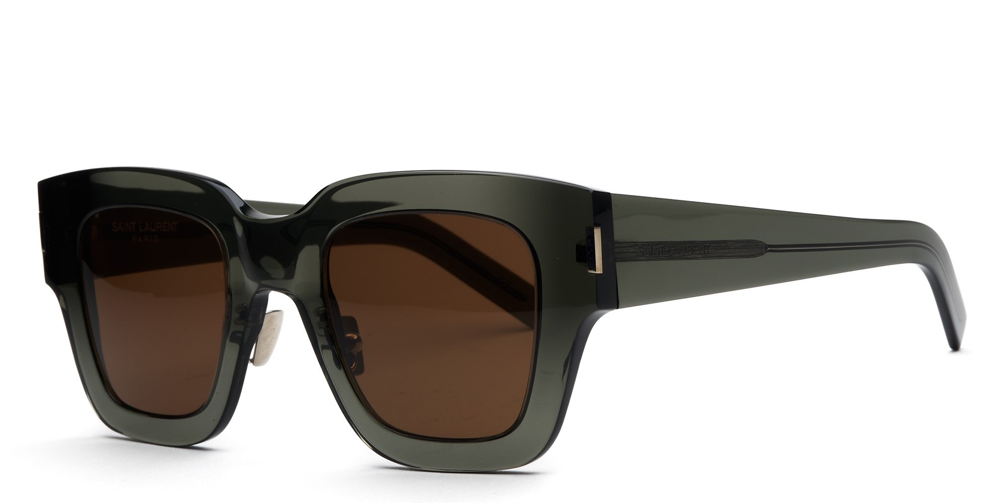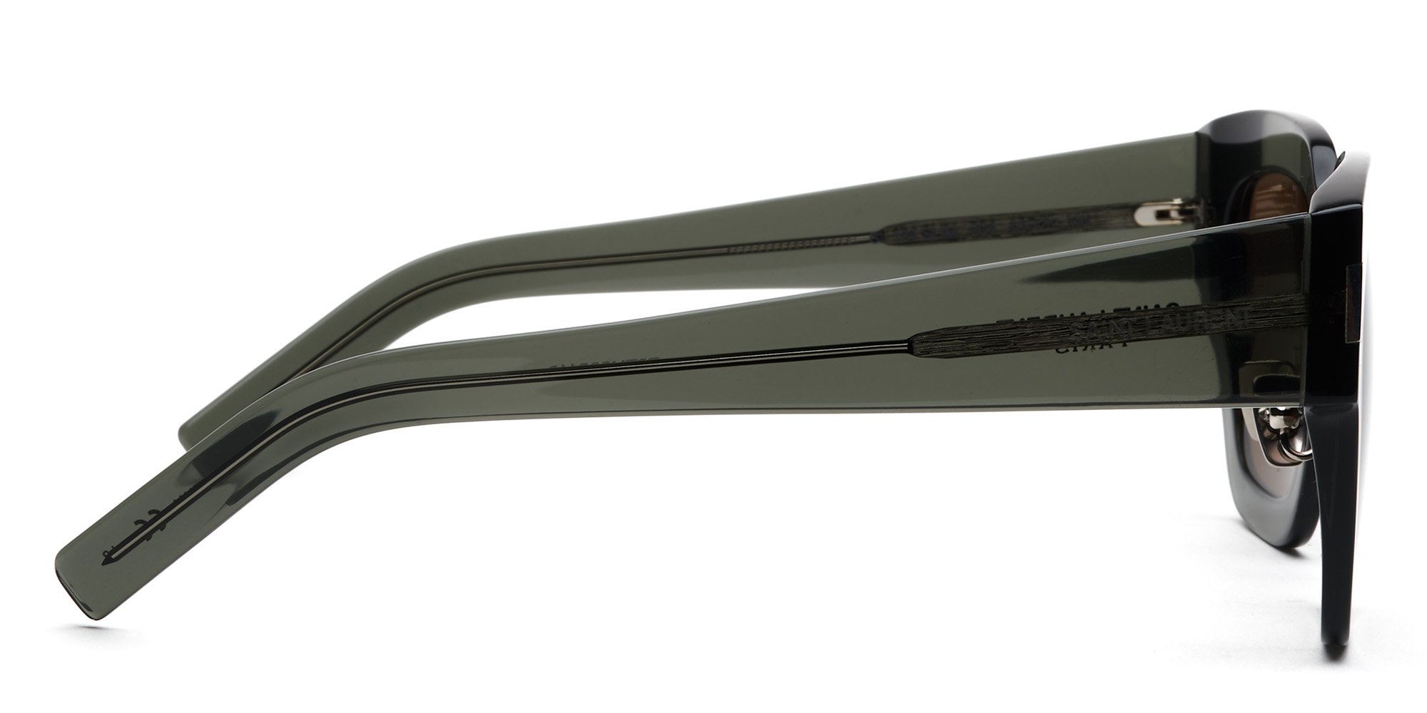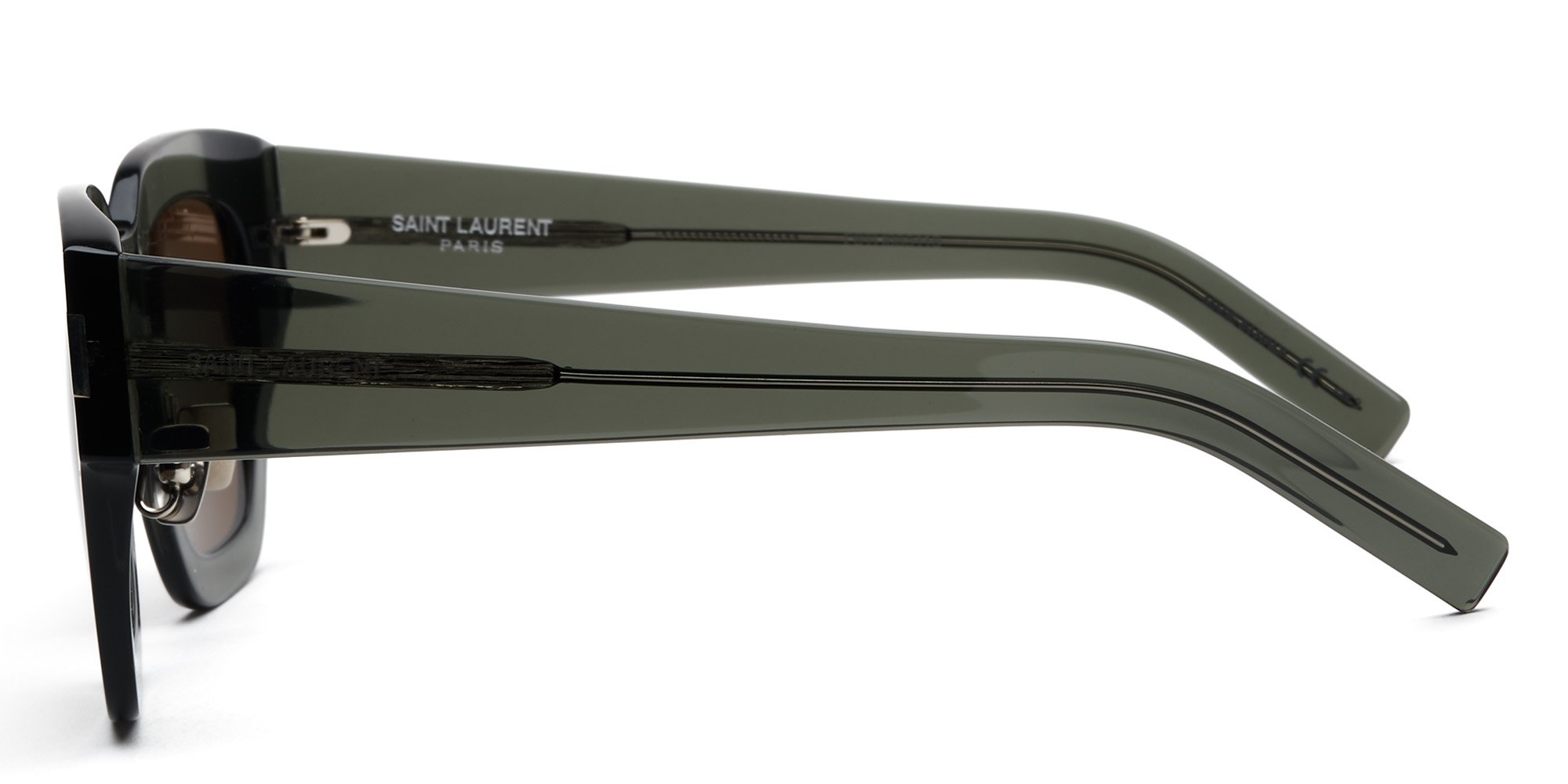 Saint Laurent combines impeccable modern detailing with a classic silhouette to dramatic effect in these SL 184 sunglasses. The frames are constructed from acetate, a plant based material that’s hypoallergenic, lightweight and durable. The robust wire core temples curve inward and are molded over the ears for comfort. These frames come adorned with a tall rivet on the wing tips for added elegance. Opt for sunglasses that speak to your individual style in the SL 184 by Saint Laurent.