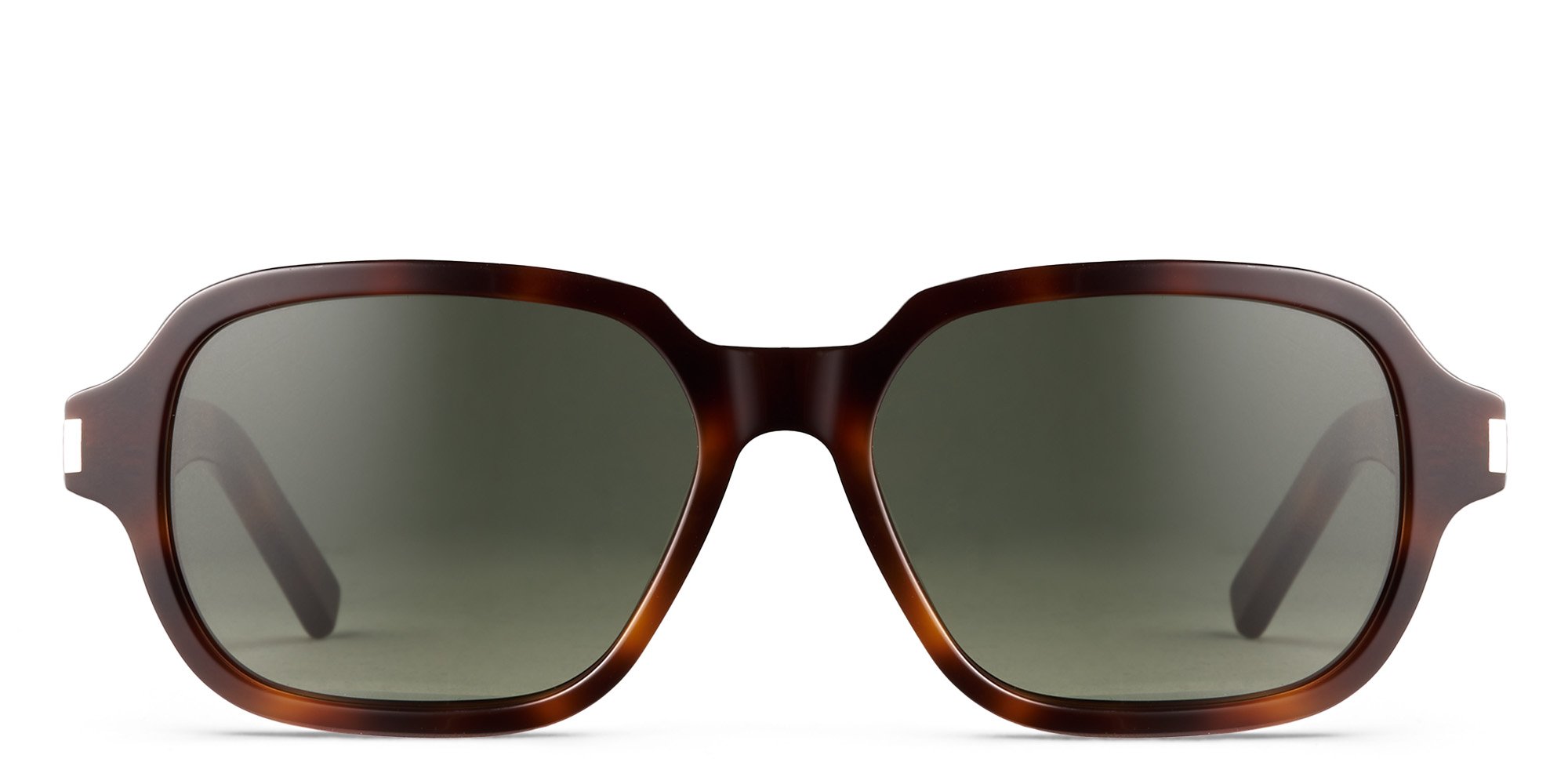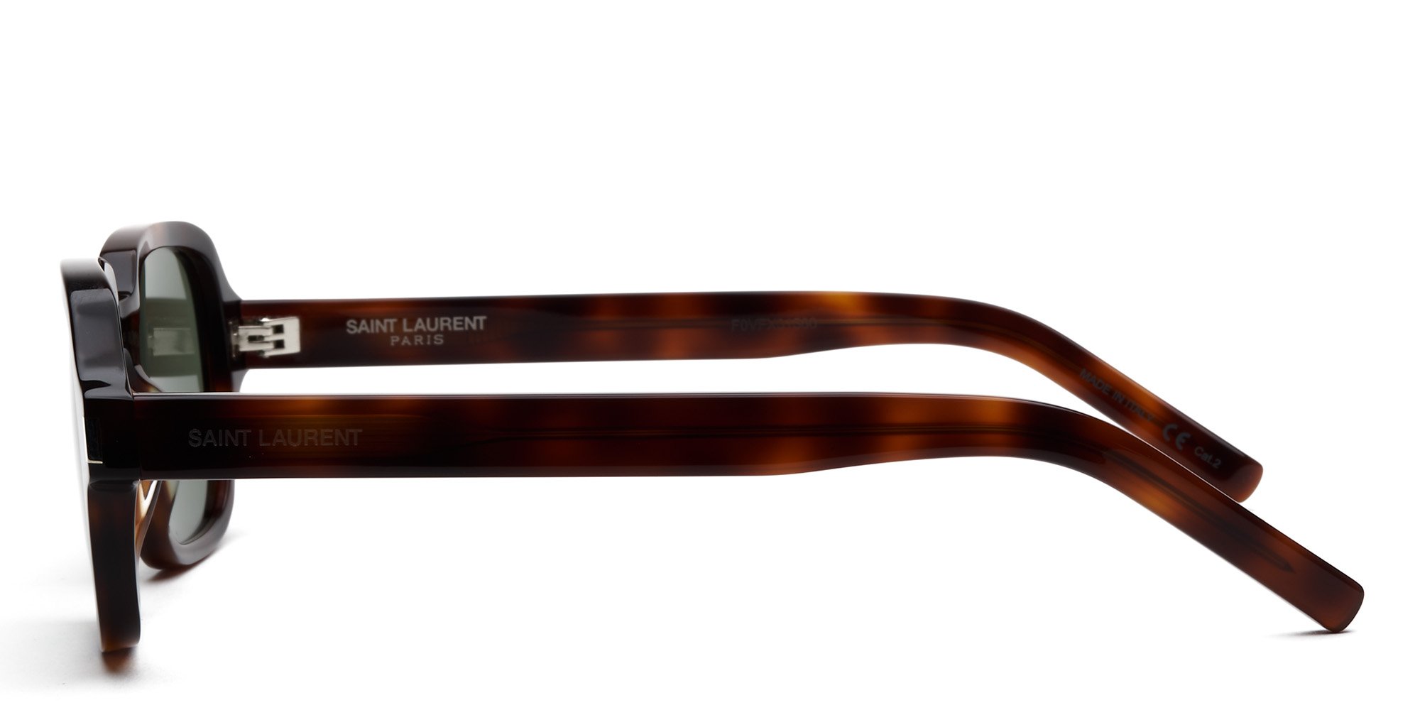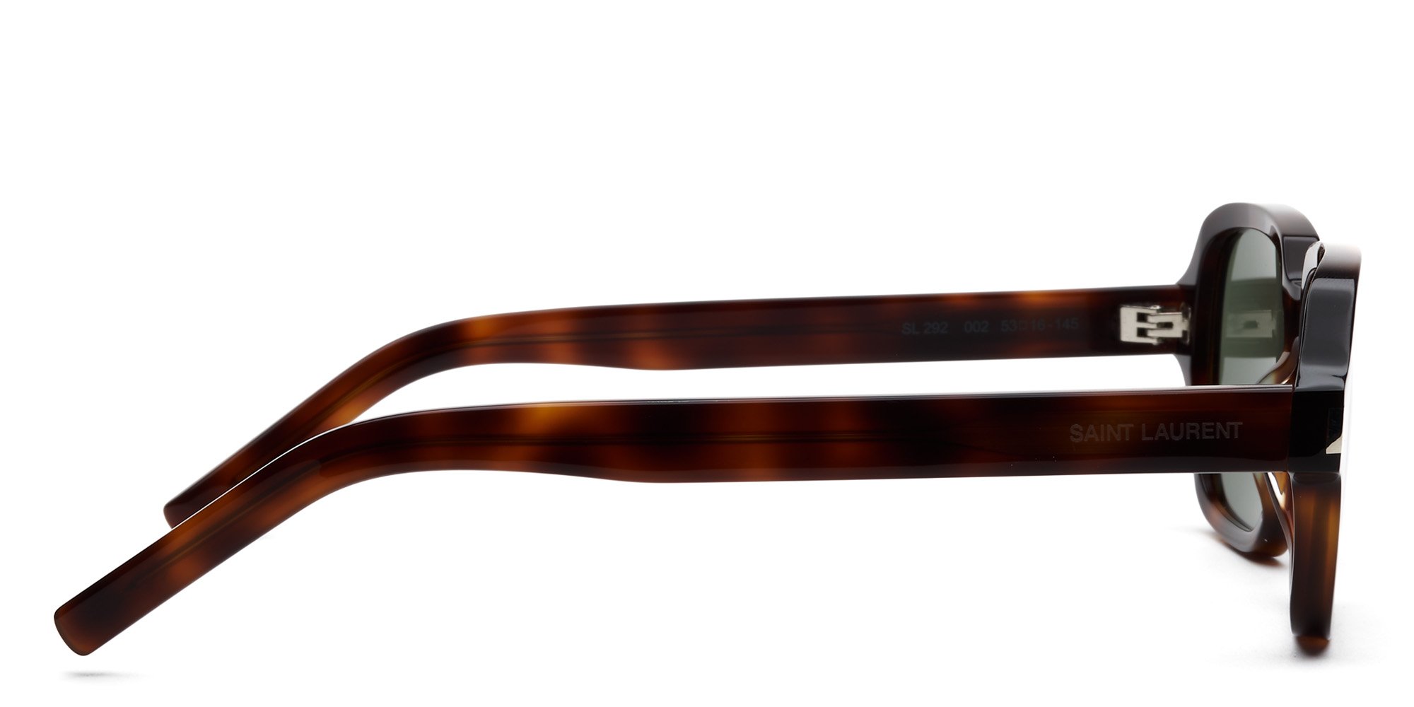 Brave every cloudless day with the SL 292 sunglasses by Saint Laurent. Thick, full rims with rounded rectangular lenses complement round and square faces. The skull temples are solid and sturdy, with long sloping tips offering a secure hold. Embedded. Barrel hinges hold their initial adjustment for a secure fit. The material of these fashionable acetate frame sunglasses is strong and flexible, while remaining lightweight for easy, comfortable wear.