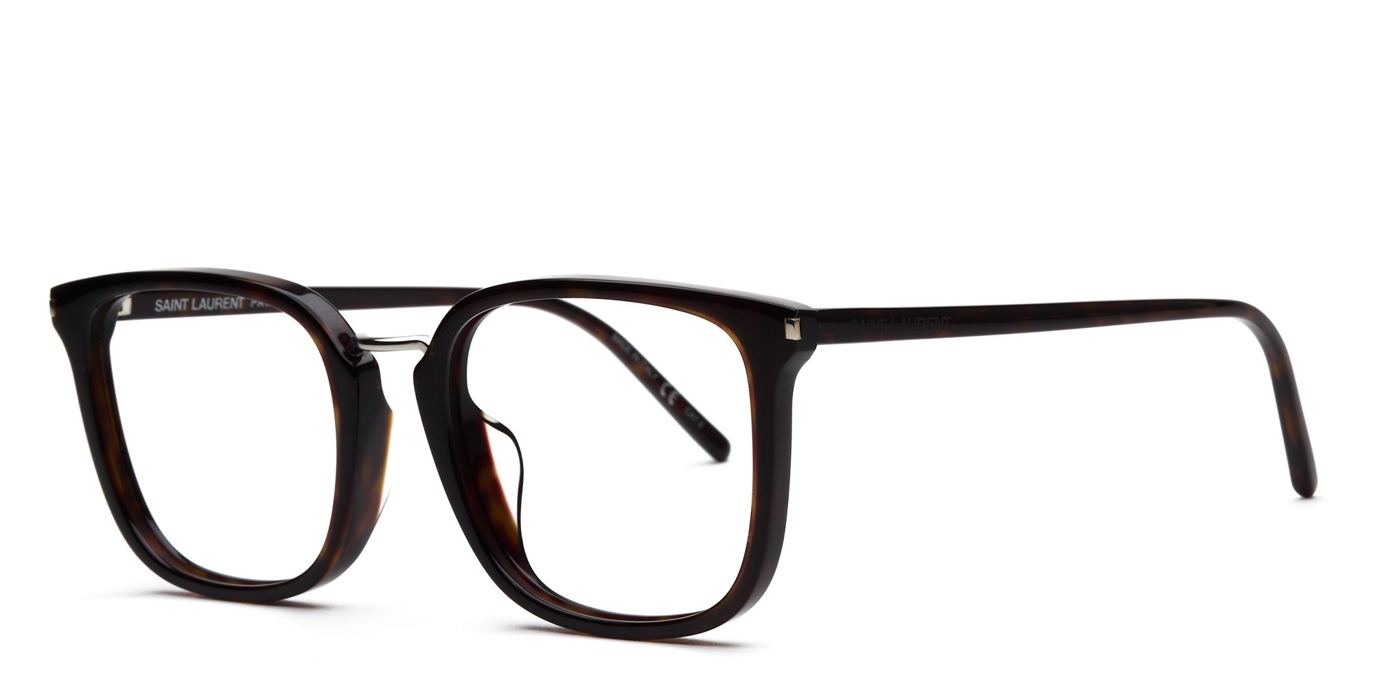 Experience a blast from the past with the retro looking SL 131F eyeglasses by Saint Laurent. These glasses mix classic and modern, with super thin temples and a keyhole metal bridge which complement your business or leisure outfits. Acetate makes these lightweight full rim eyeglasses extra durable. The frame material is also hypoallergenic, keeping your skin clear even with hours of wear. The square lenses are a perfect fit for round, oval, and oblong-shaped faces, with an overall versatile look.