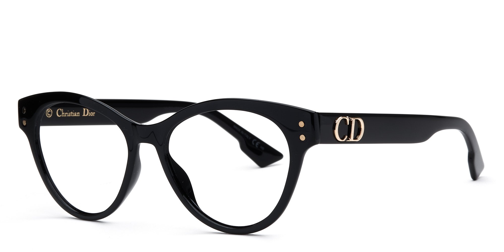 Look smart and stylish in the cosmopolitan CD4 Glasses by Dior. The rounded shape of these cat eye frames offers a classy look with artistic flair. Full rim acetate frames give these glasses extra durability and a lustrous look. A circular Dior logo at the temple adds a touch of flash and class. Embrace modern design with a sophisticated, classic style sensibility when you step out wearing these chic Glasses by Dior.