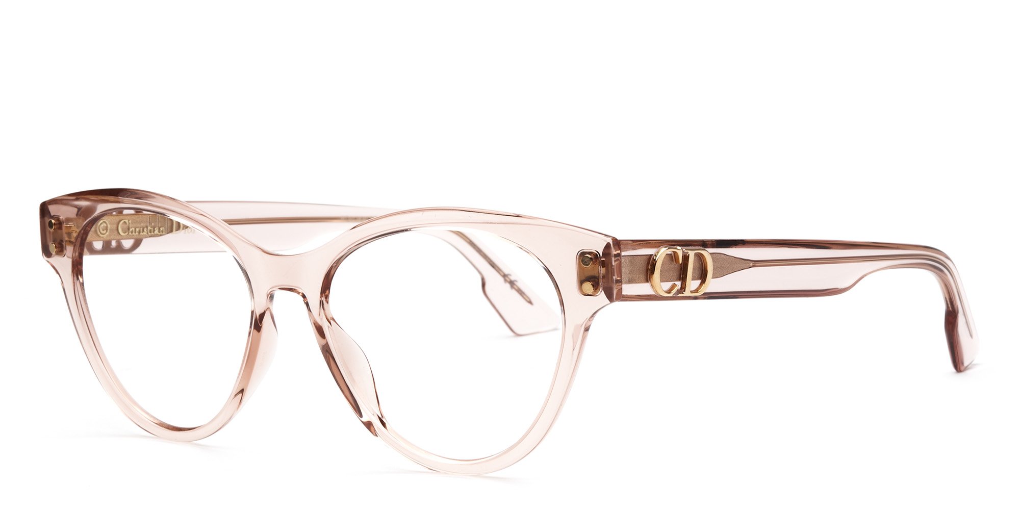 Look smart and stylish in the cosmopolitan CD4 Glasses by Dior. The rounded shape of these cat eye frames offers a classy look with artistic flair. Full rim acetate frames give these glasses extra durability and a lustrous look. A circular Dior logo at the temple adds a touch of flash and class. Embrace modern design with a sophisticated, classic style sensibility when you step out wearing these chic Glasses by Dior.