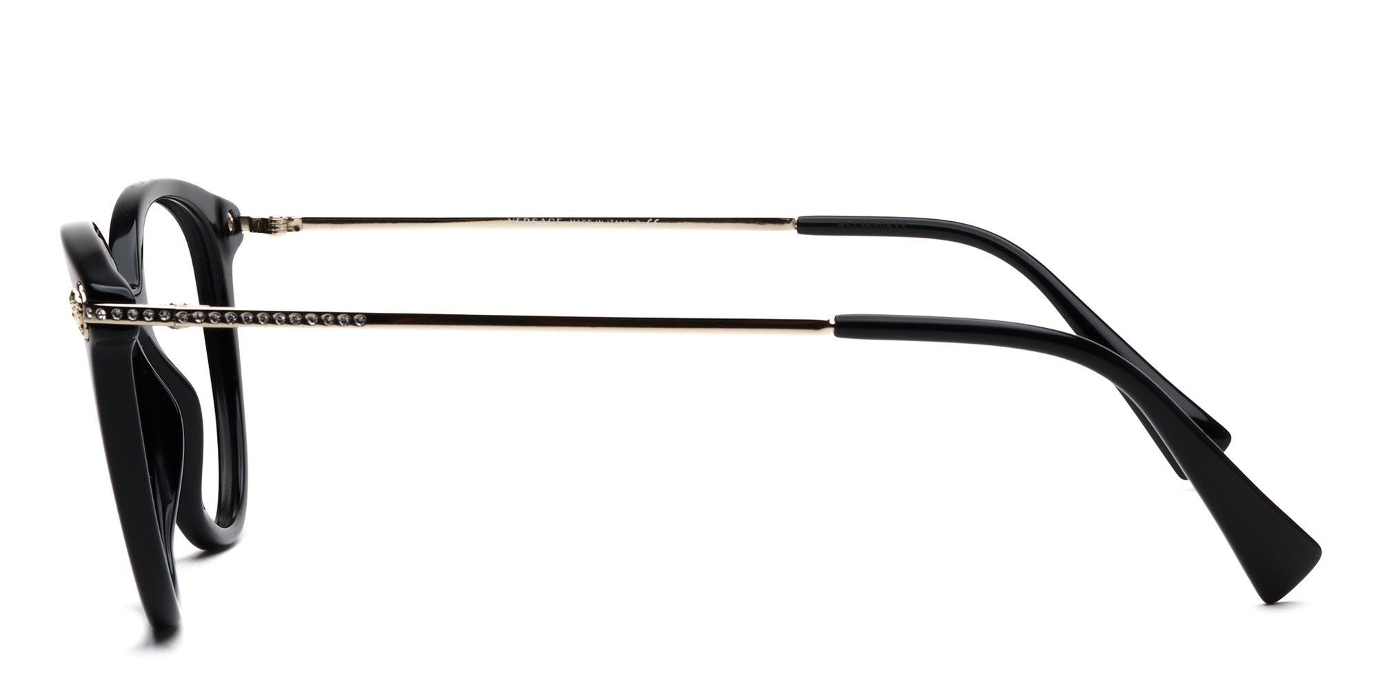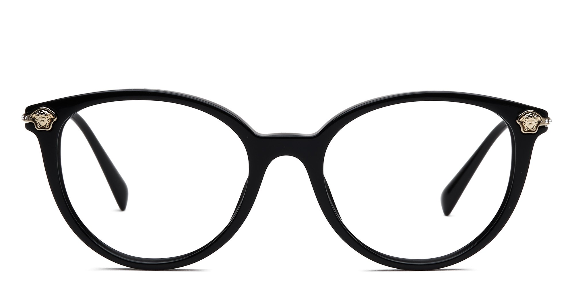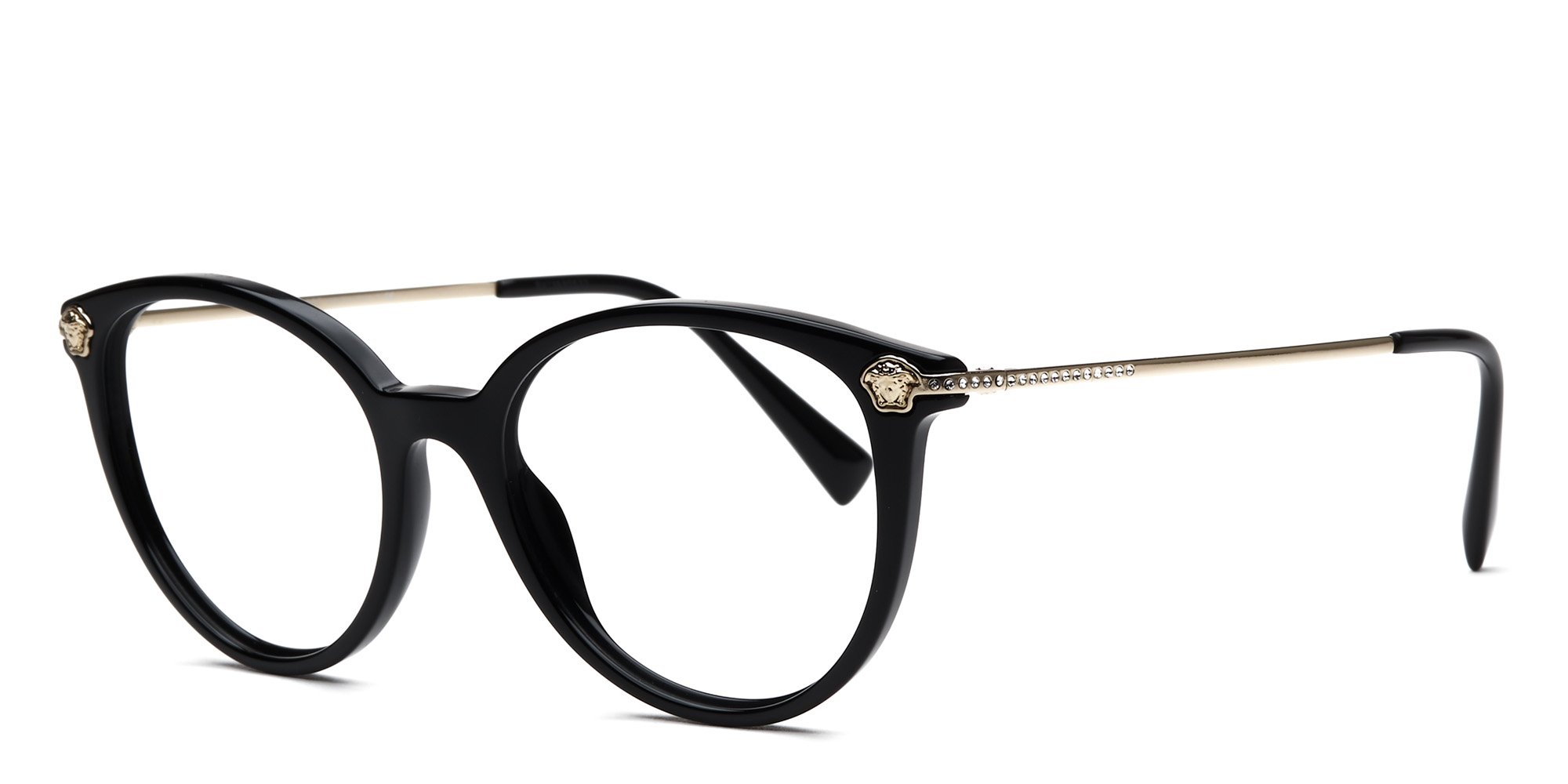 Versace lives up to its reputation for glamorous, cutting edge design in these OVE3251B Glasses. This cat eye frame is crafted in lightweight acetate, a sturdy, plant based plastic that retains its high luster for lasting beauty. A saddle bridge distributes the weight of the frames evenly across the face to reduce pressure for comfort. The temples curve inward behind the ears to keep the glasses from wobbling. Enjoy original, sophisticated Italian style wearing these exquisite glasses from Versace.