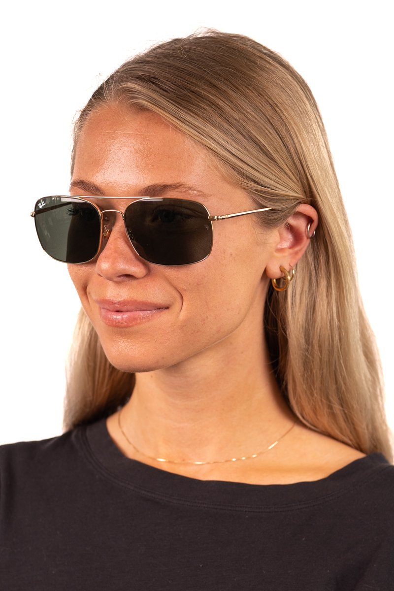 The 0RB3611 sunglasses from Ray-Ban are modern classics. They offer all the iconic good looks of classic aviators with thin metal rims and double bridge in the smaller, navigator style lens shape that doesnt overwhelm. The temples are made of lightweight, hypoallergenic metal. Sturdy barrel hinges are comfortable and offer security. The Ray-Ban logo appears on the temple and lens to confirm your casual yet sophisticated style.