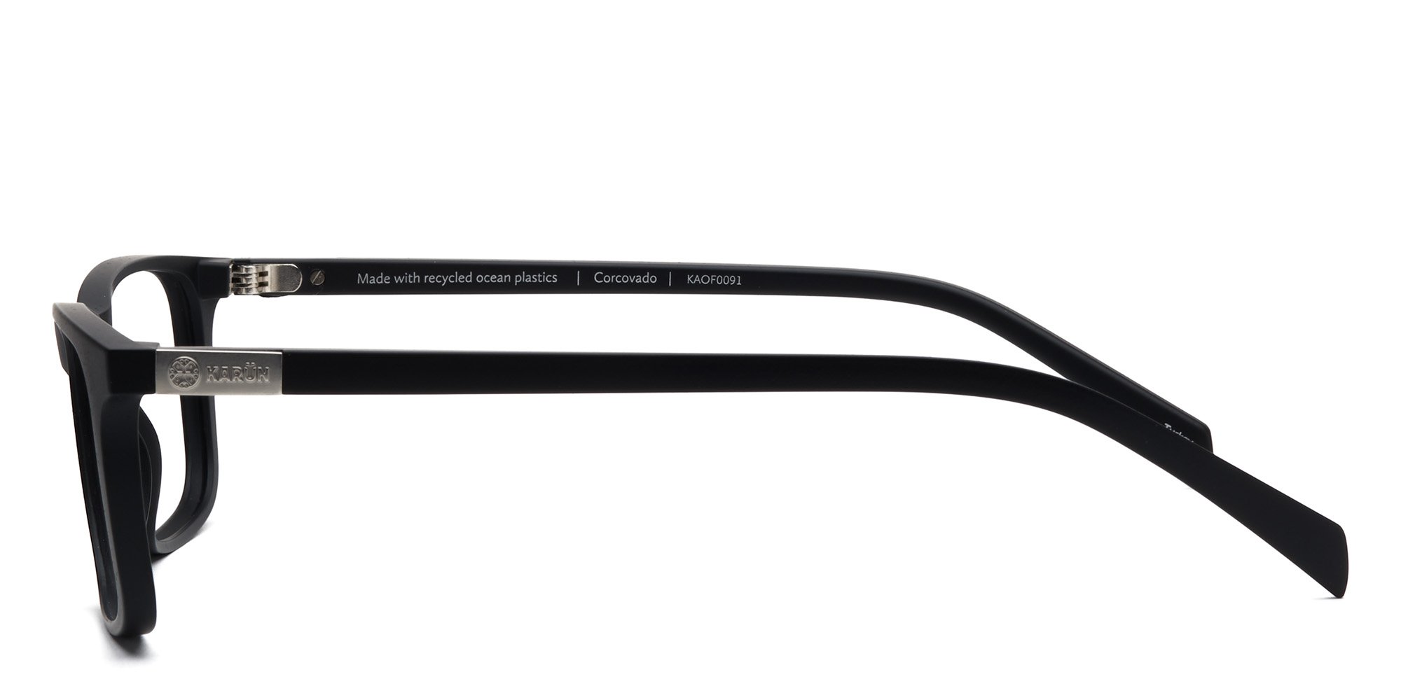 Refine your casual get up with the fashionable Corcovado eyeglasses by Karün. The rectangular lenses are ideal for oval, round, and heart shaped faces. Feel the comfort and sturdiness of these full rim frames made from durable and hypoallergenic ECONYL® regenerated nylon (from fishing nets from Patagonia and other discarded nylon). Give your formal or shirt-and-jeans look an upgrade with these angular glasses by Karün.