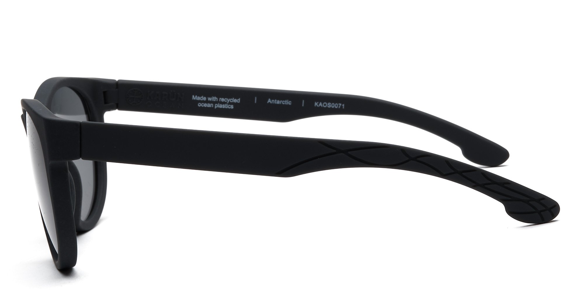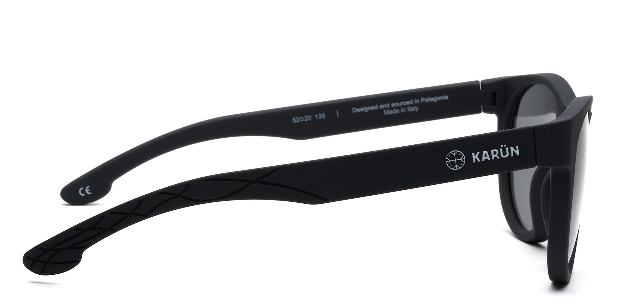 Flaunt a sporty style wearing the Antarctica sunglasses. ECONYL® regenerated nylon (from fishing nets from Patagonia and other discarded nylon) in the frames is hypoallergenic, durable, and lightweight. Nose pads and temple tips ensure the glasses won't slip off. Rectangular rounded rims flatter round, square, oval, and heart-shaped faces. These full rim sunglasses sport the Karün logo on the temples for a signature look.