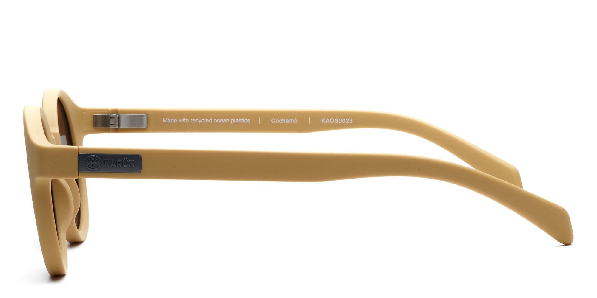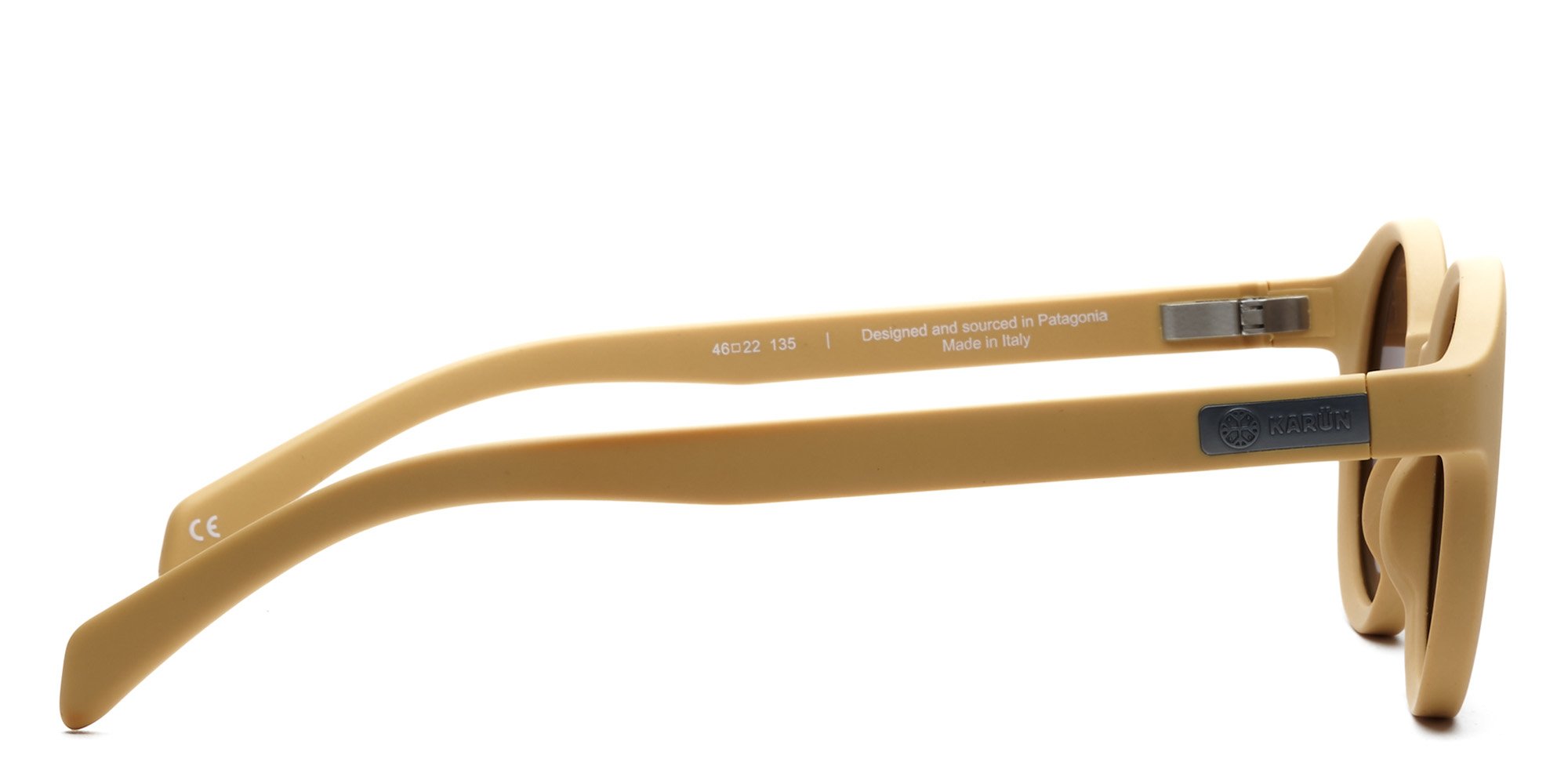 The Cochamo Sun sunglasses by Karün speak to the wearer who appreciates the classic style. The robust round frames are crafted from durable ECONYL® regenerated nylon (from fishing nets from Patagonia and other discarded nylon) with a single bridge design that evokes a vintage look. Slim skull temples wrap around the head for added stability, sporting the Karün logo and signature for appeal.