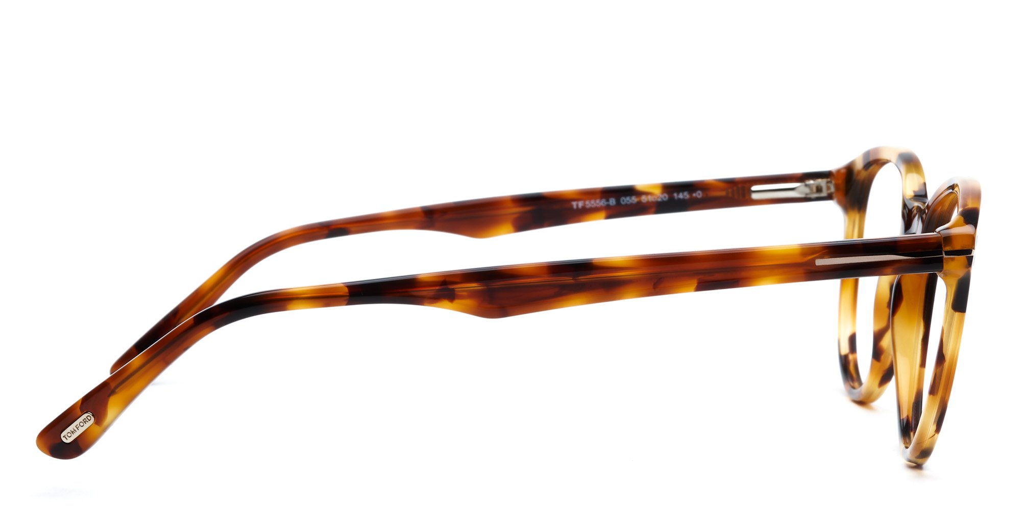 Showcase a subtle retro vibe wearing the FT5556-BV eyeglasses by Tm Ford. These designer frames feature an understated cat eye silhouette in a vibrant finish, thanks to their lightweight but sturdy acetate construction. With a flexible wire core, the sleek acetate temples adjust easily for a comfortable fit, and easy to repair conventional hinges deliver on durability. A keyhole bridge sits below the swooping browline, evenly distributing the weight of the frames across the face. Signature branding at the temple brow end adds chic designer appeal to these Tom Ford glasses.