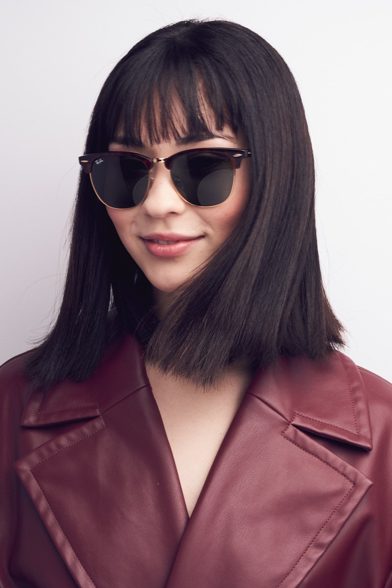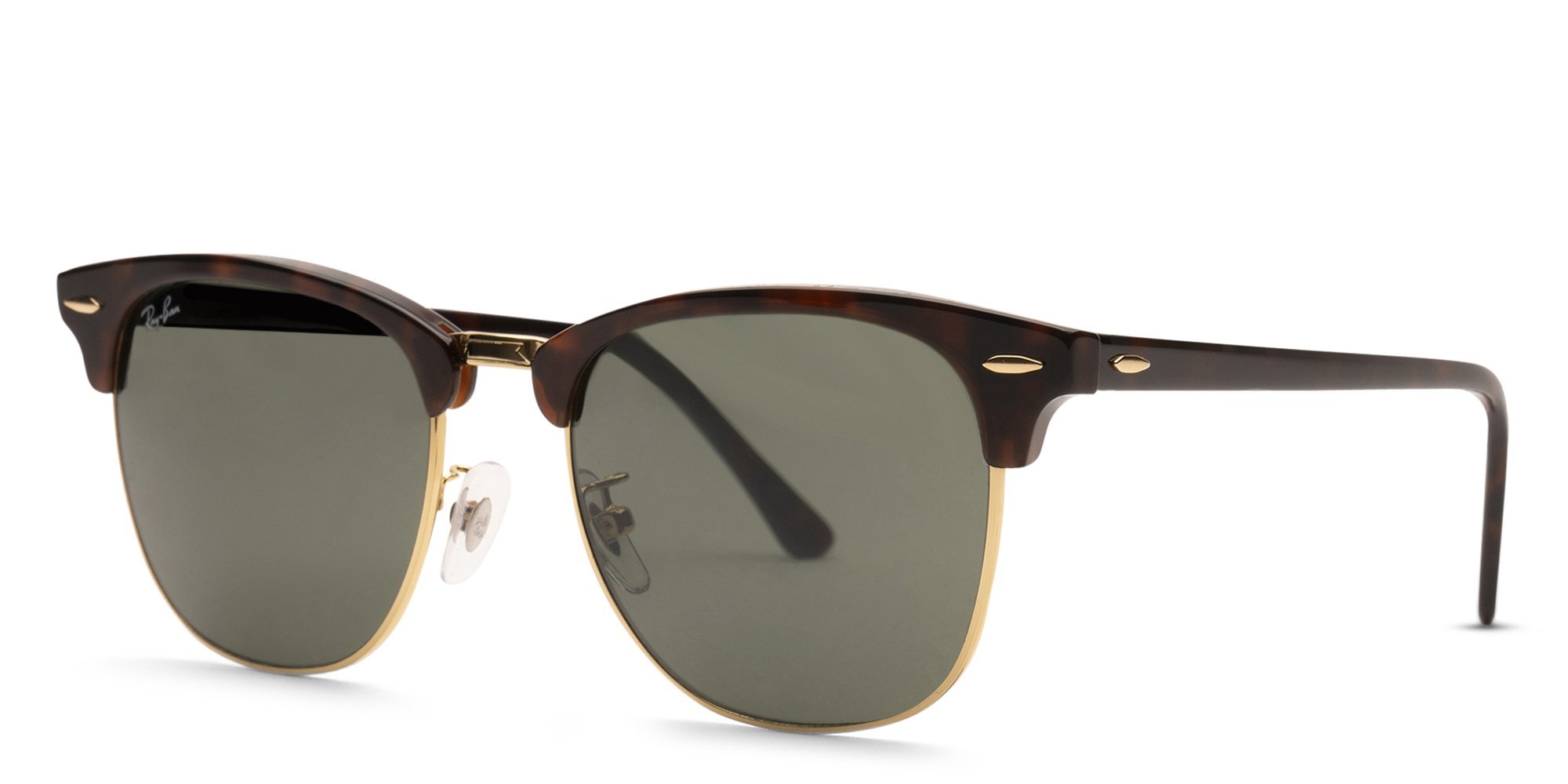 The distinctive look of these RB3016 sunglasses by Ray-Ban recalls the bold style of the 1950s. This browline silhouette is currently enjoying a resurgence among fashion savvy wearers. Constructed with a top bar and contrasting metal bridge, the full rim frames are crafted from a combination of metal and acetate, and both materials are lightweight, hypoallergenic, and durable. Signature metal rivet accents on end-pieces and temples and small white Ray-ban logo on the right lens add an elegant touch. Enjoy a look that makes a classic statement with these sunglasses from Ray-Ban.