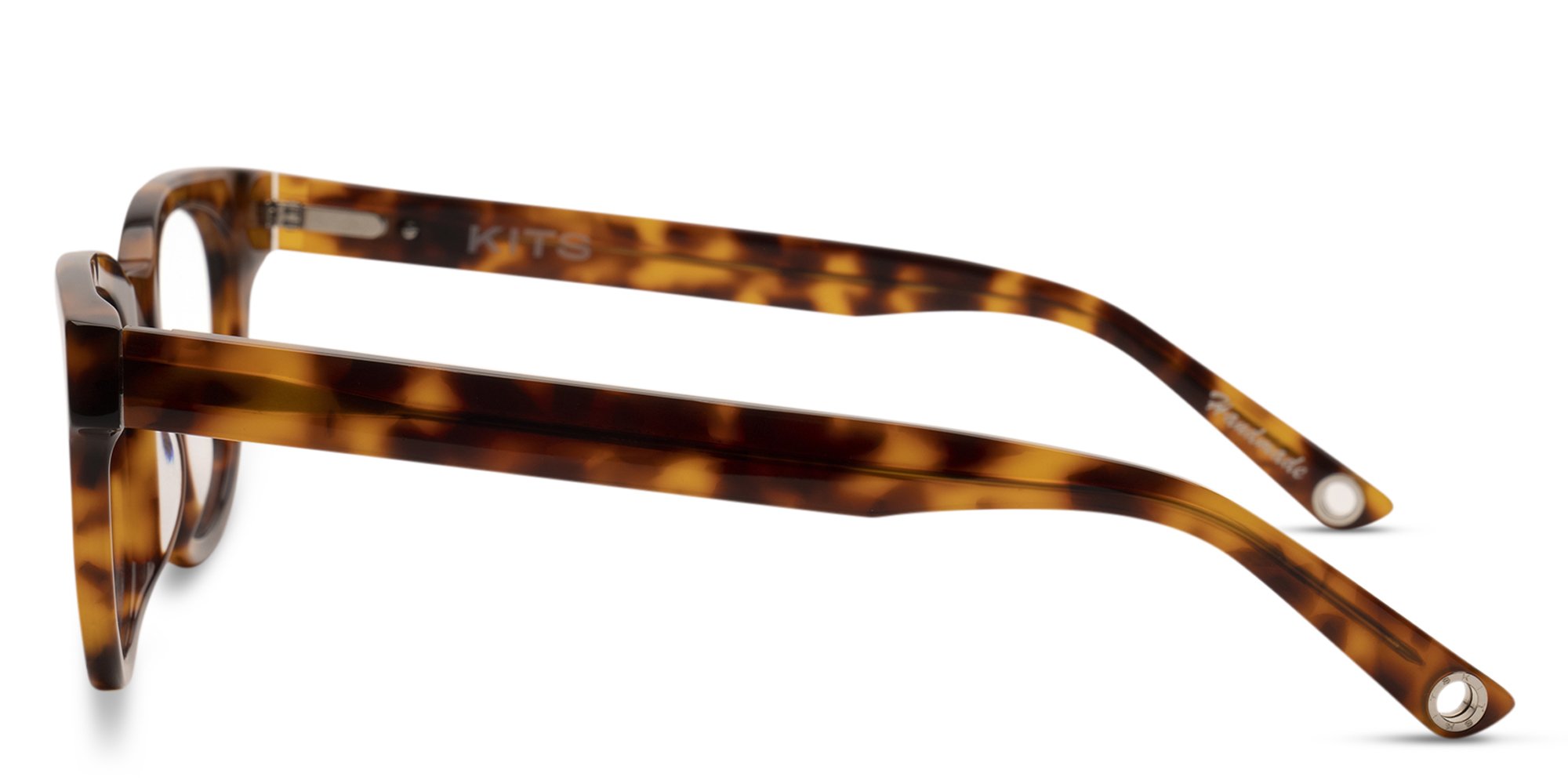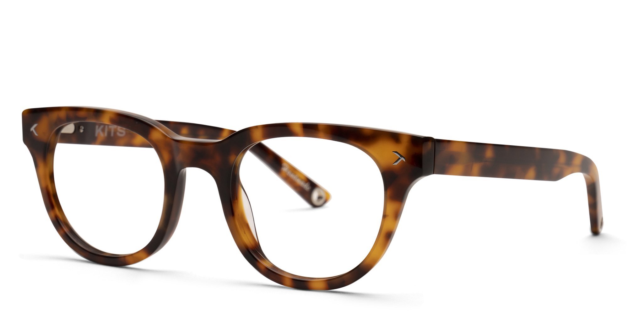 In the vintage inspired Chapter II, KITS offers high quality eyeglasses with retro appeal and plenty of panache. Sturdy paddle temples feature a stylish shark fin shape, with spring hinges that hold their initial adjustment and balance for a secure fit. The saddle bridge distributes the weight of the glasses comfortably on the face, a nice feature for the wearer with a wider nose. These frames are made out of eco-acetate from renewable, natural resources. Derived from cotton seeds and plant pulp, eco-acetate is recyclable, biodegradable and eco friendly. If youre searching for full rim glasses that evoke the classic style, look no further than the bold Chapter II by KITS. Please note these frames fit large and are best suited to those with wider faces.