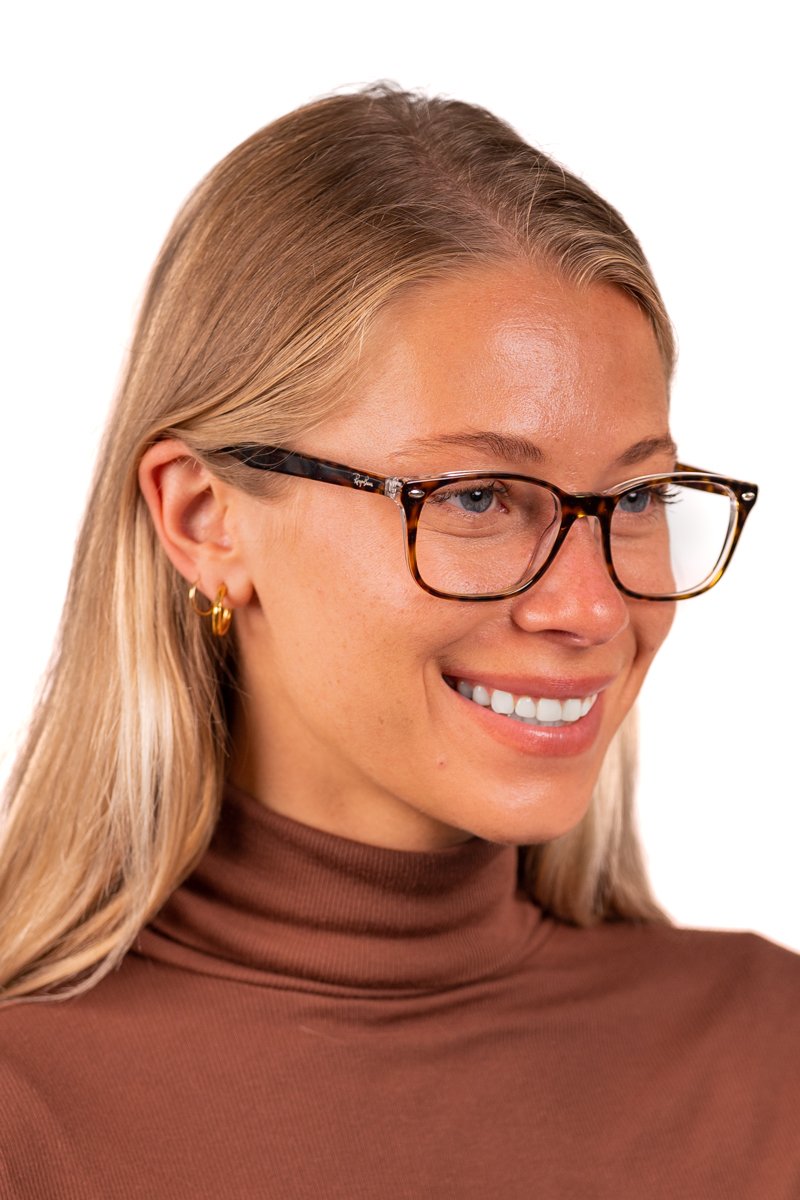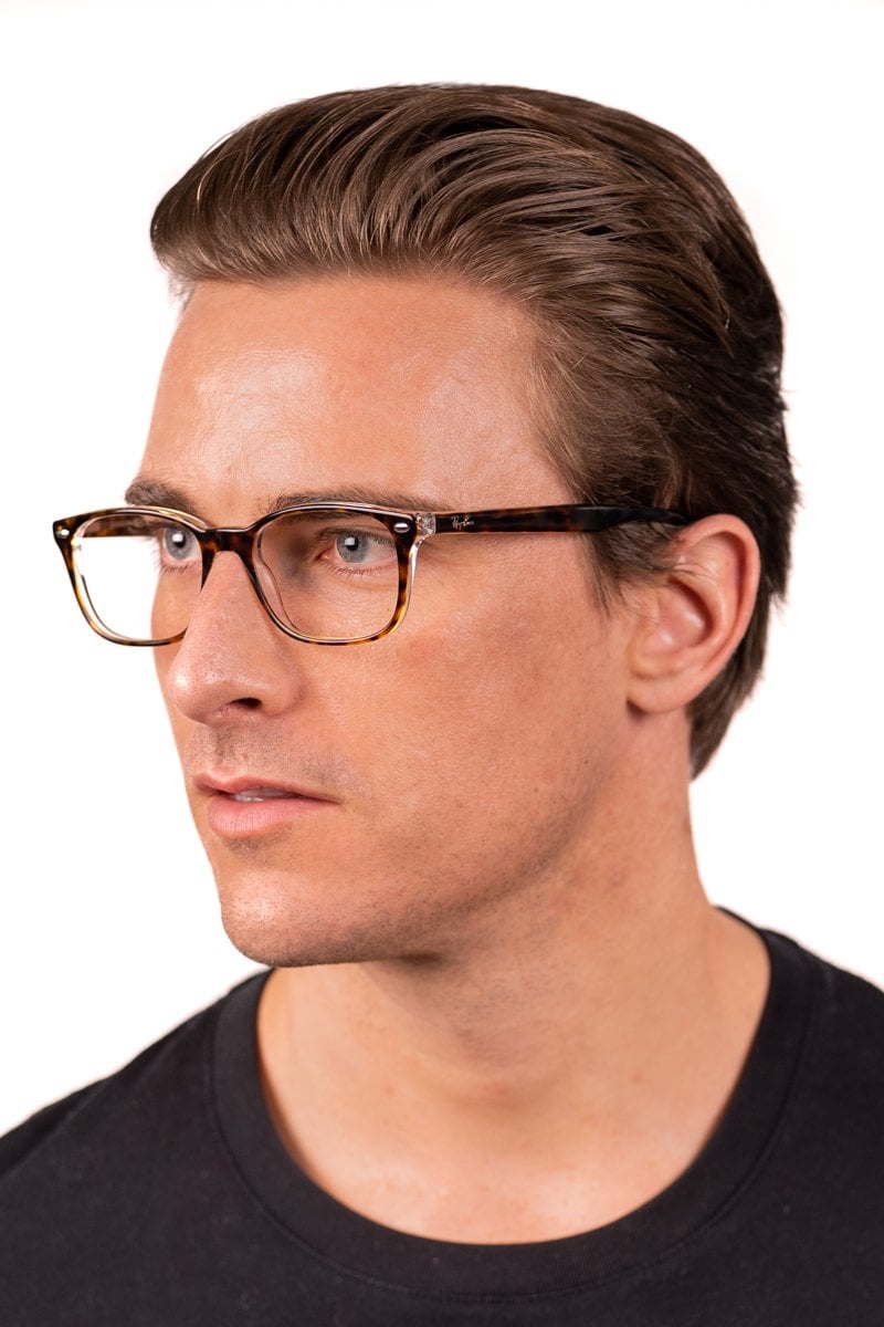 It's hip to be square in Ray-Ban RX5375 eyeglasses, inspired by the iconic glasses style of the '60s. Lightweight acetate frames are durable enough for all your daily adventures. Spring hinges provide flexibility without gradually stretching out, so you'll enjoy a comfortable fit that won't start to slip with time. Bold square frames flatter round faces, and these cool eyeglasses for men coordinate perfectly with your appreciation for a little bit of retro styling.