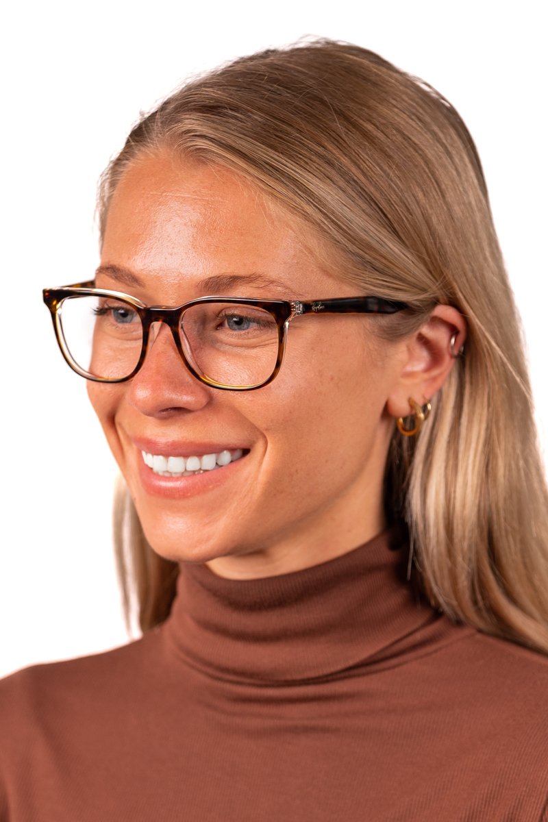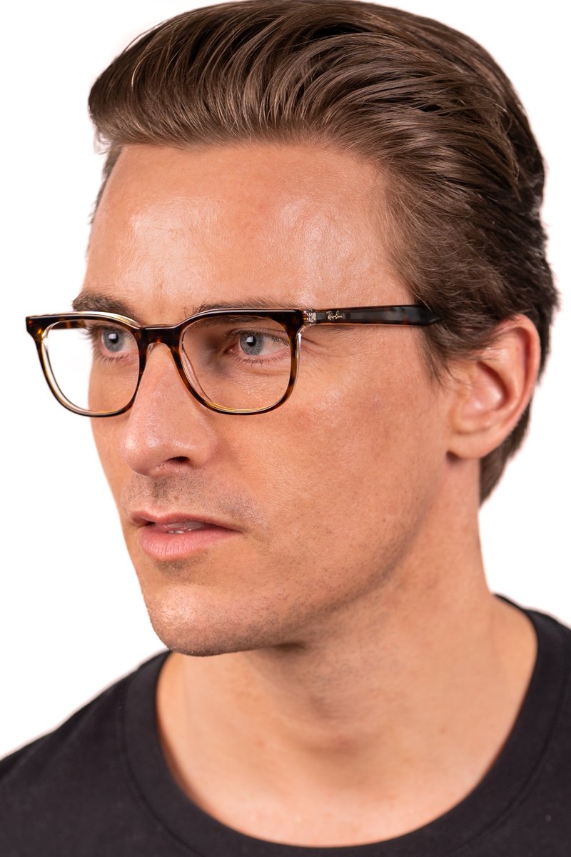 When you want an understated accessory with a classic silhouette, choose Ray-Ban RX5369 prescription eyeglasses. With square lenses that complement oval, round, and oblong faces, these lightweight acetate eyeglasses are for the wearers who want a sophisticated look for their ensemble. The temples have the Ray-Ban shark fin profile and are attached with spring hinges, so they fit snugly, even during physical activity. For durable style that stays with you on and off the field, pick the Ray-Ban RX5369 eyeglasses.