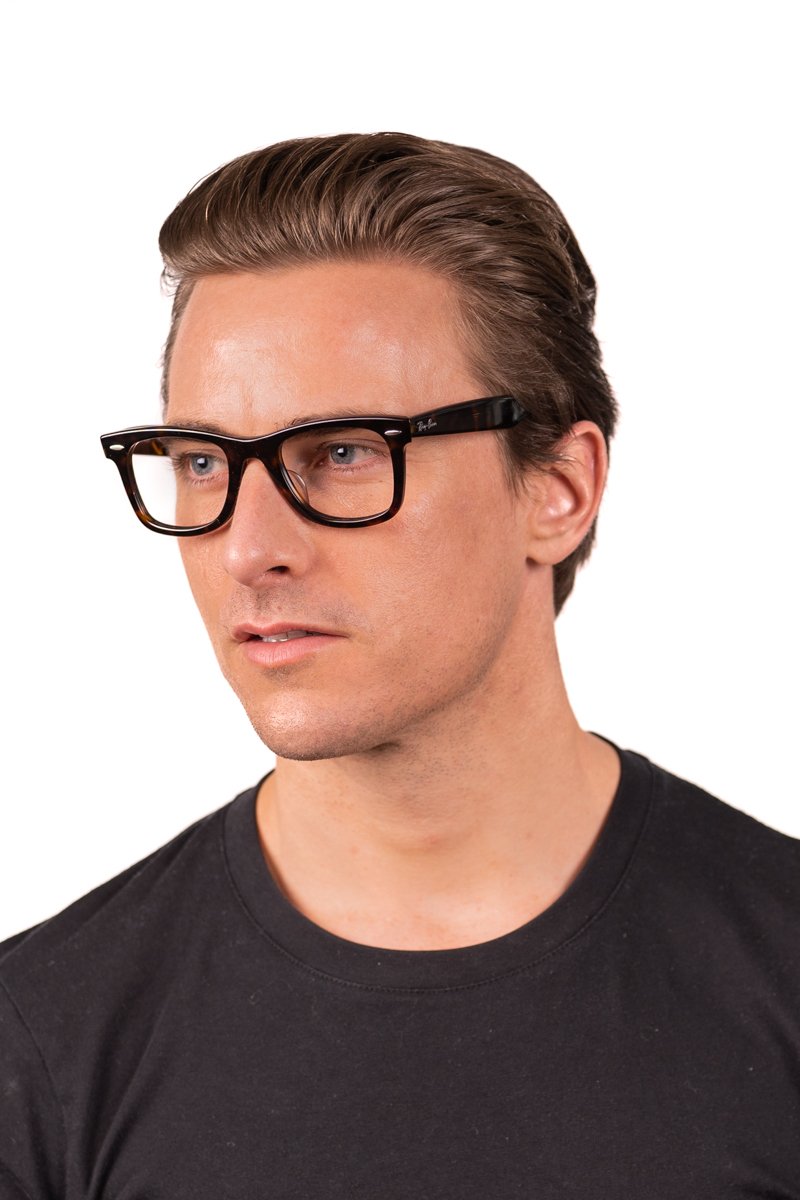 Classic style never fades, so complete your look with RX5121F eyeglasses. This model is the most iconic example of the popular horn rim silhouette. The bold, full rim frames consist of lightweight yet durable and hypoallergenic acetate for prolonged wear. The wayfarer style works to complement round or oval faces, and the alternate fit profile ensures they settle properly over prominent cheekbones or a lower nose bridge.