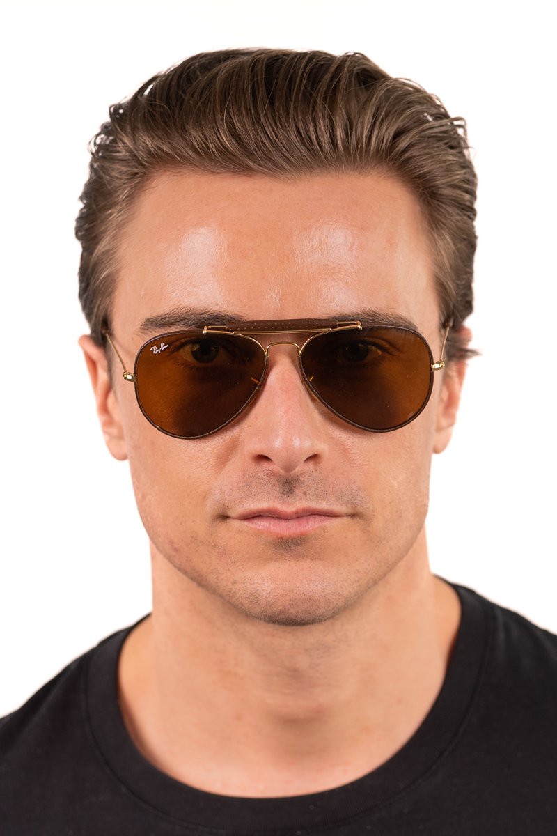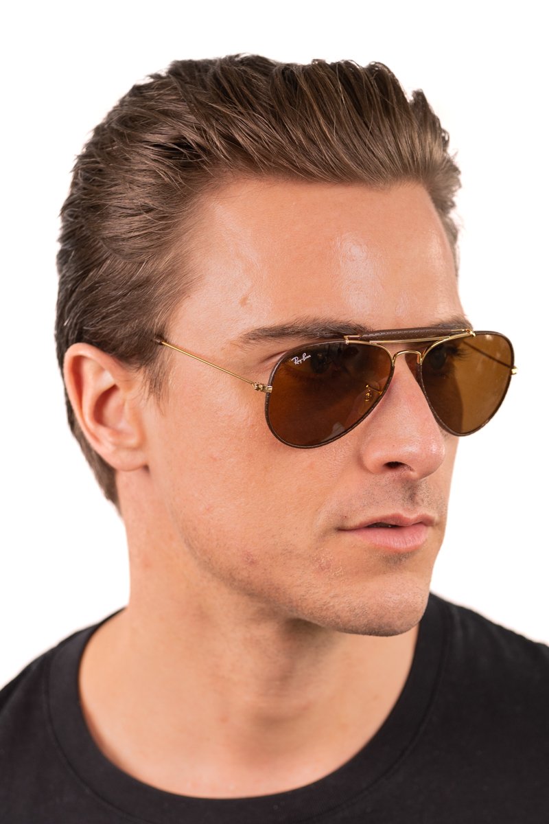 Stand out from the crowd while enjoying a wide field of view wearing Ray-Ban RB3422Q eyeglasses. These glasses resemble feature eye catching oversized full rim frames made in sturdy, non corrosive metal. The flat double bridge, an element of the aviator style from the 1930s, adds stability and a touch of retro styling to the frames. Coated temple tips are comfortable and offer a secure fit. For elevated style, durability, and comfort, opt for the RB3422Q sunglasses from Ray-Ban.