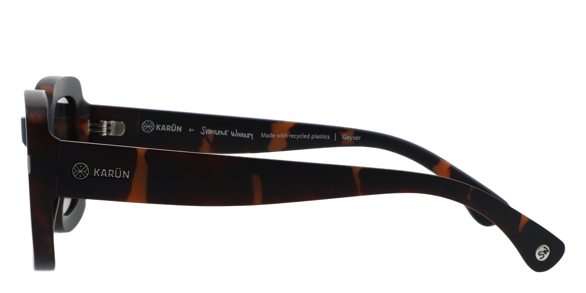 Look chic from every angle with the Karün Geyser sunglasses. Econyl regenerated nylon (from fishing nets from Patagonia and other discarded nylon) ensures these bold, full rim frames are lightweight, and sturdy. The skull temples keep them from sliding, while the widened tips stay comfortable behind your ears. Oval and round faces look well defined with these square Karün sunglasses. Developed by Karün in association with Shailene Woodley, these frames provide a real sustainable fashion statement. At work or on vacation, enjoy the 1960s retro vibe of these striking shades.
