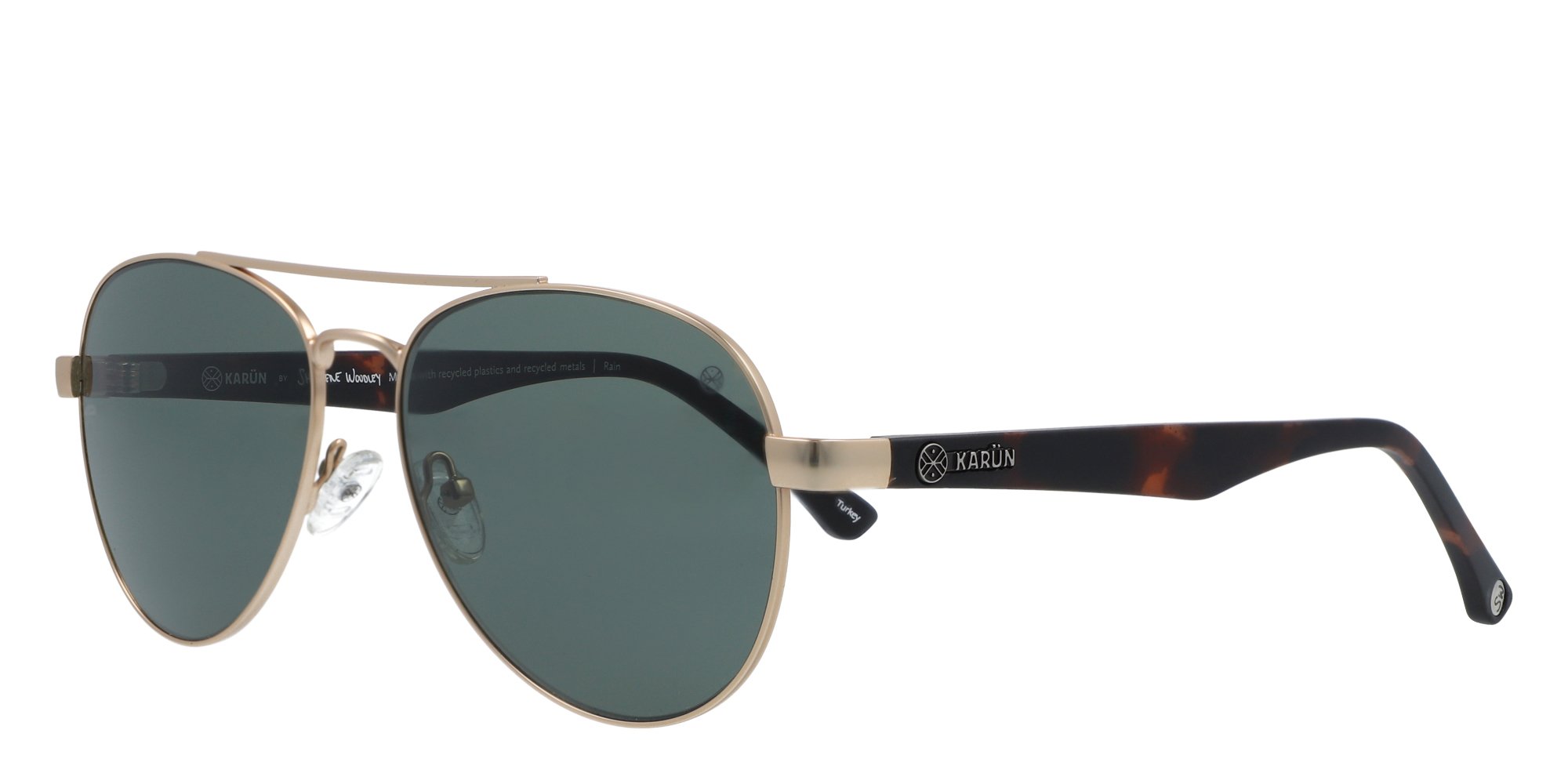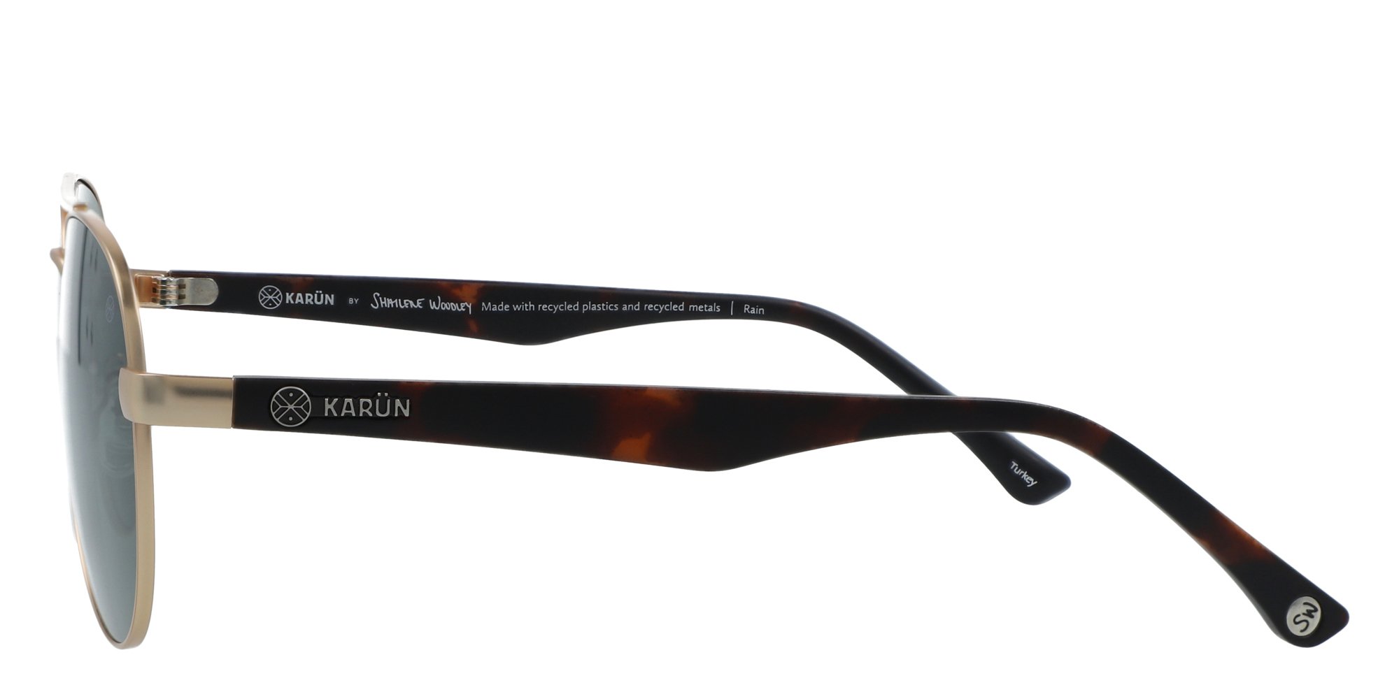 Refine your chic good looks in the Rain sunglasses from Karün. These aviator style shades sport an indisputable classic cool look enhanced by graceful design features. The recycled metal rims are lightweight and strong, the frames wont warp, nor will they corrode or rust when exposed to water. Developed by Karün in association with Shailene Woodley, these frames provide a real sustainable fashion statement.