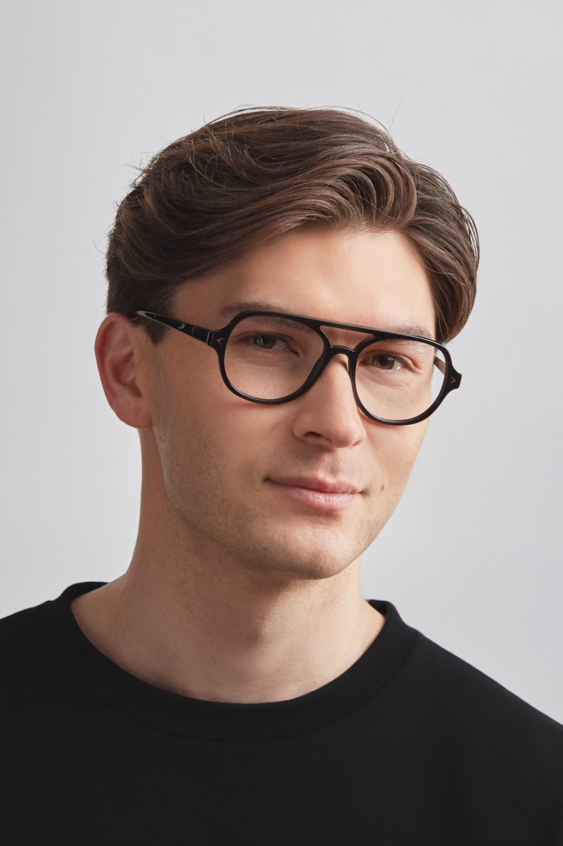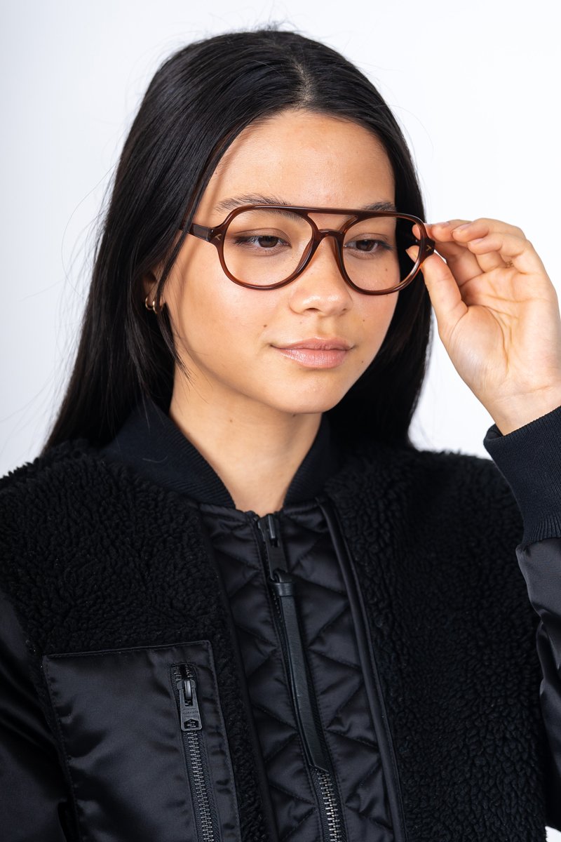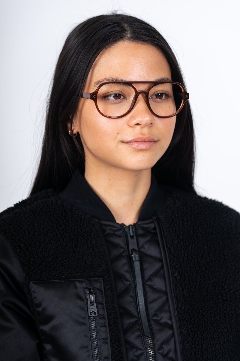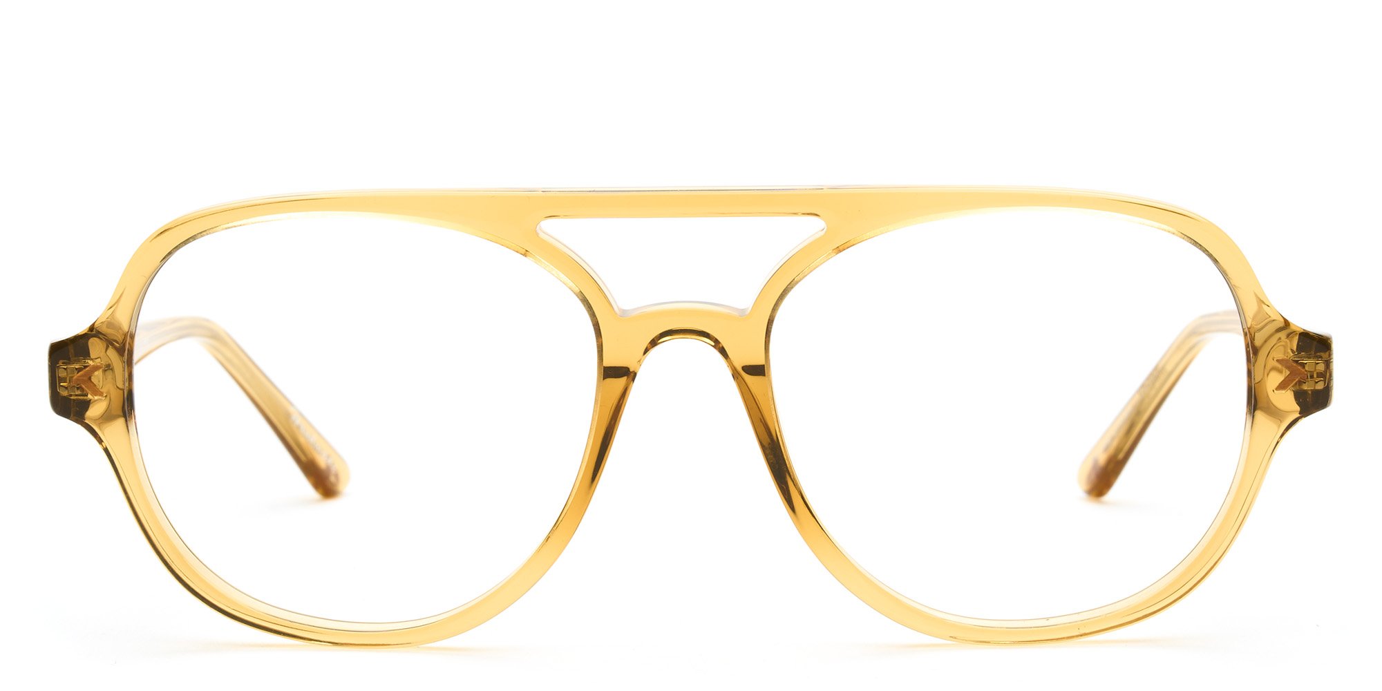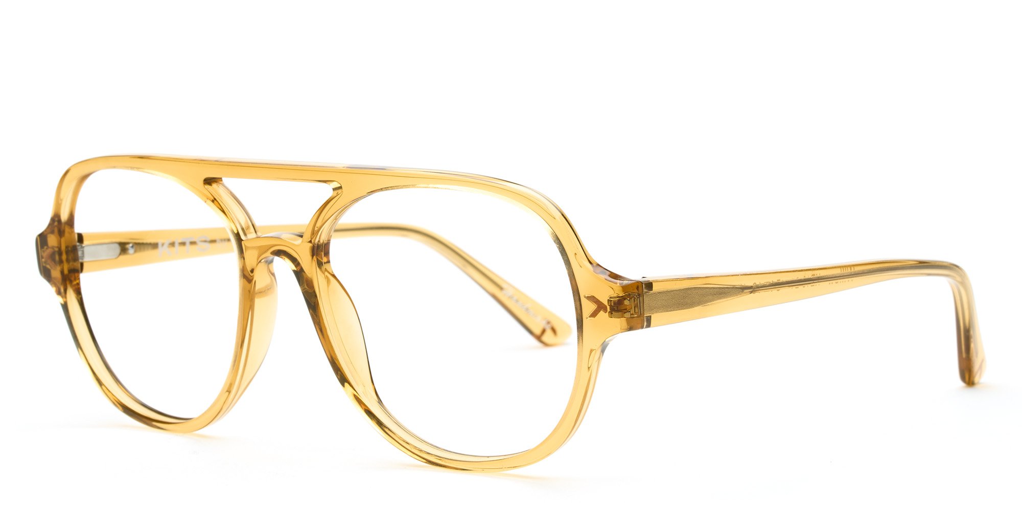 The Willow eyeglasses are KITS's take on aviators, in the companys innovative, outdoorsy style. These glasses sport the iconic lens shape, browline, and double bridge of the classic aviator, but the bold full rims add a look thats eye catching and stylish. The unusual design works well with a nerd chic aesthetic, or in the wardrobe of the on trend style maven. Spring hinges are flexible and comfortable, and a shark fin contour at the temple keeps you looking sharp from all angles. Please note these frames fit large and are best suited to those with wider faces.