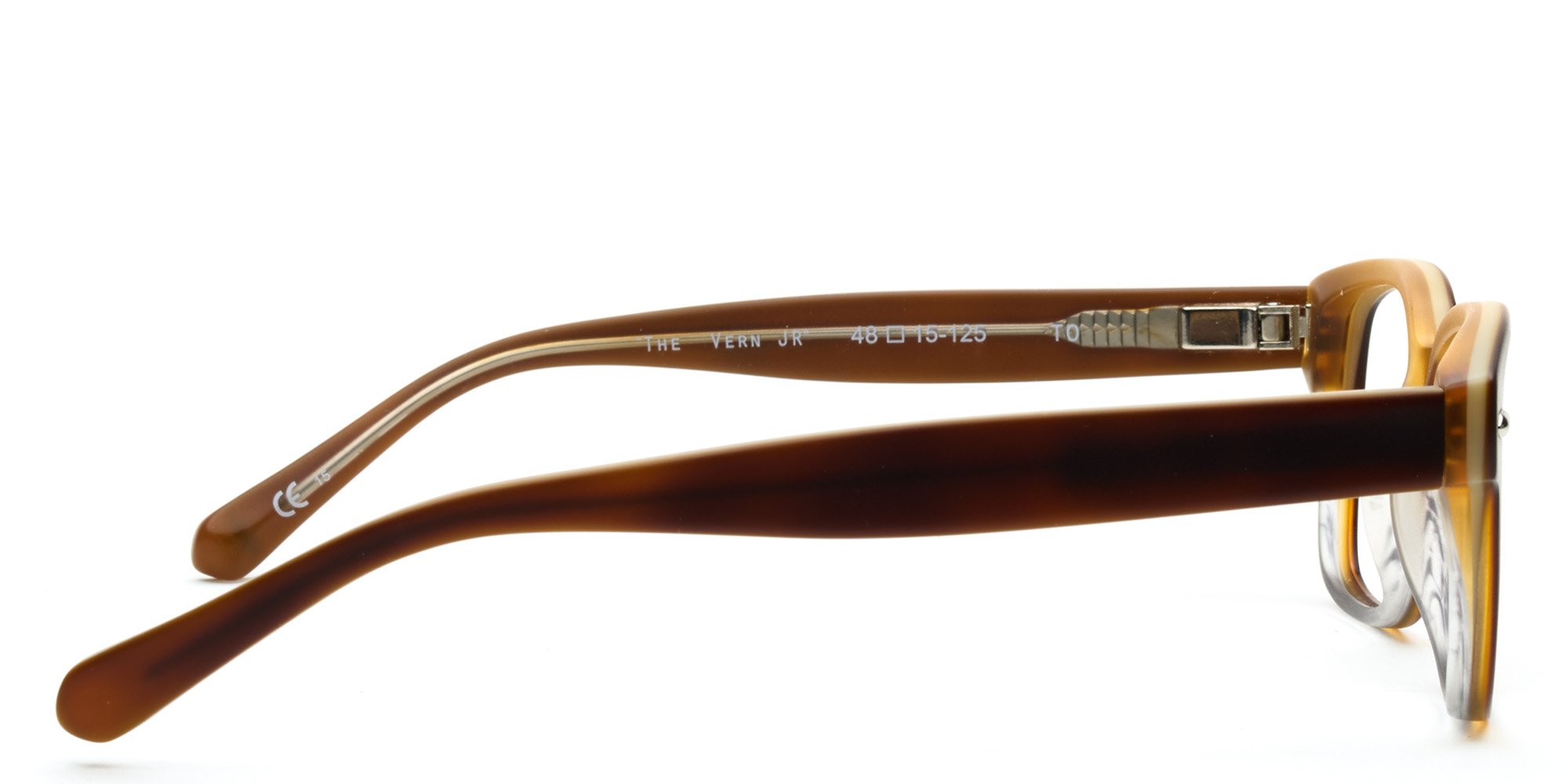 The Vern Jr eyeglasses are fun, fresh, and functional. These frames are made in acetate, a popular choice in designer eyeglasses because of its lighter weight and strength, making it comfortable and durable, perfect qualities for kids glasses. Acetate also retains its attractive luster, so these cute Penguin glasses keep looking as great as they did the first day your child wore them.
