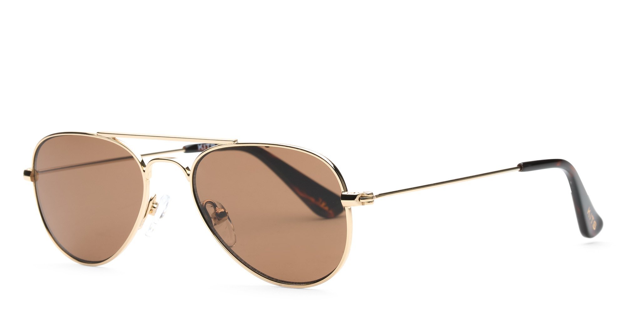 Its never too early for timeless style: Outfit your young trendsetter in the Nytorget Kids sunglasses from Kits. These aviator glasses exude all the classic cool of the grownup version, but Kits creates them in sizes especially for youth. The iconic metal rims, teardrop lenses, and double bridge leave no doubt about their timetested style, and Kits's quality construction means these glasses will stand the test of time with your kid, too.