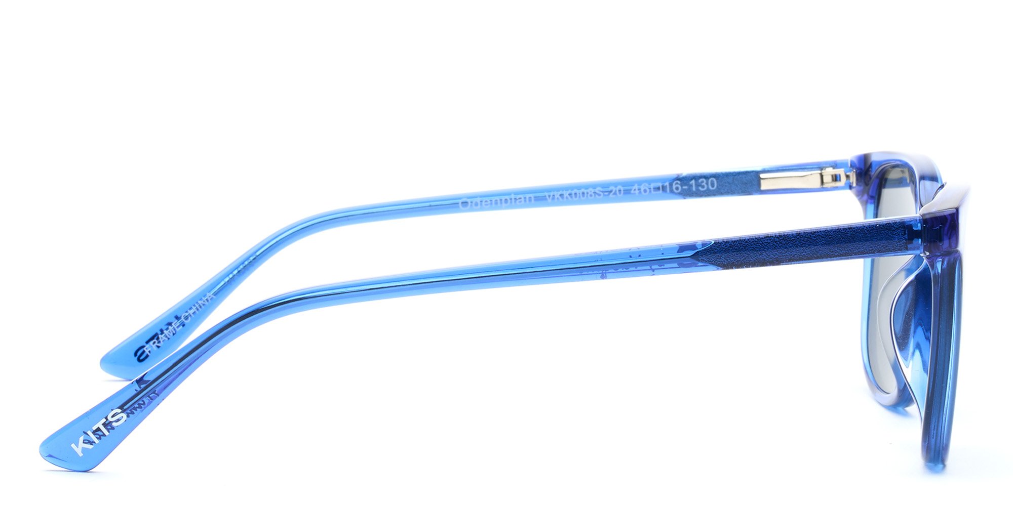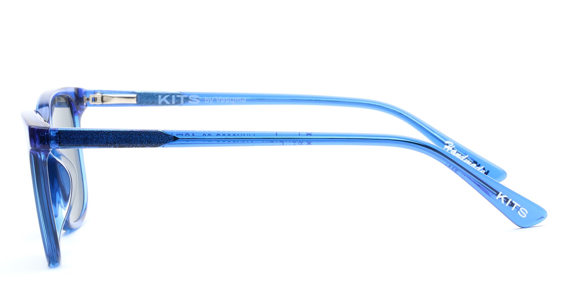 The Odenplan Kids by Kits is a charming kid sized version of the classic Odenplan sunglasses. The full rim frame is made from lustrous, resilient acetate thats lightweight enough for all day comfort and durable enough for kid level wear and tear. Spring hinges are sturdy and tough, and the slim temples add appeal to these classic glasses. Embellished with the familiar Ray-Ban Wayfarer metal rivets on endpoints and a metal Kits signature embedded in temples, these sunglasses are sure to complement your childs unique style.