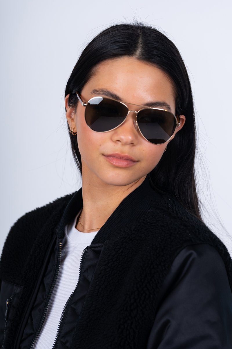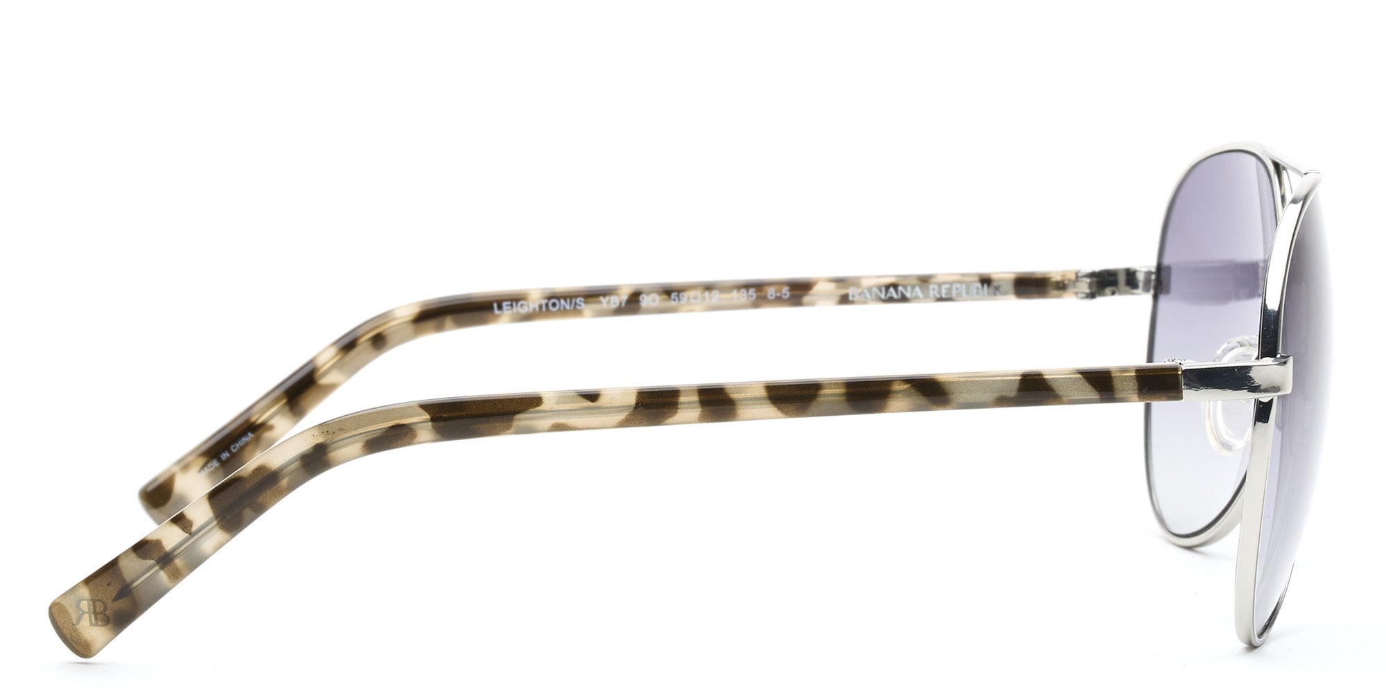 Designed for the active wearer, the Leighton sunglasses have unique, no snag nose pads that protect long hair from getting caught in the frame. Constructed with sturdy metal, these frames are malleable and absorb impacts. These metal frame Banana Republic sunglasses touch only the bridge of your nose and sides of your head, for a comfortable and secure fit. Acetate temples provide comfort at the point of contact, and are curved at the tips to prevent the sunglasses from slipping.