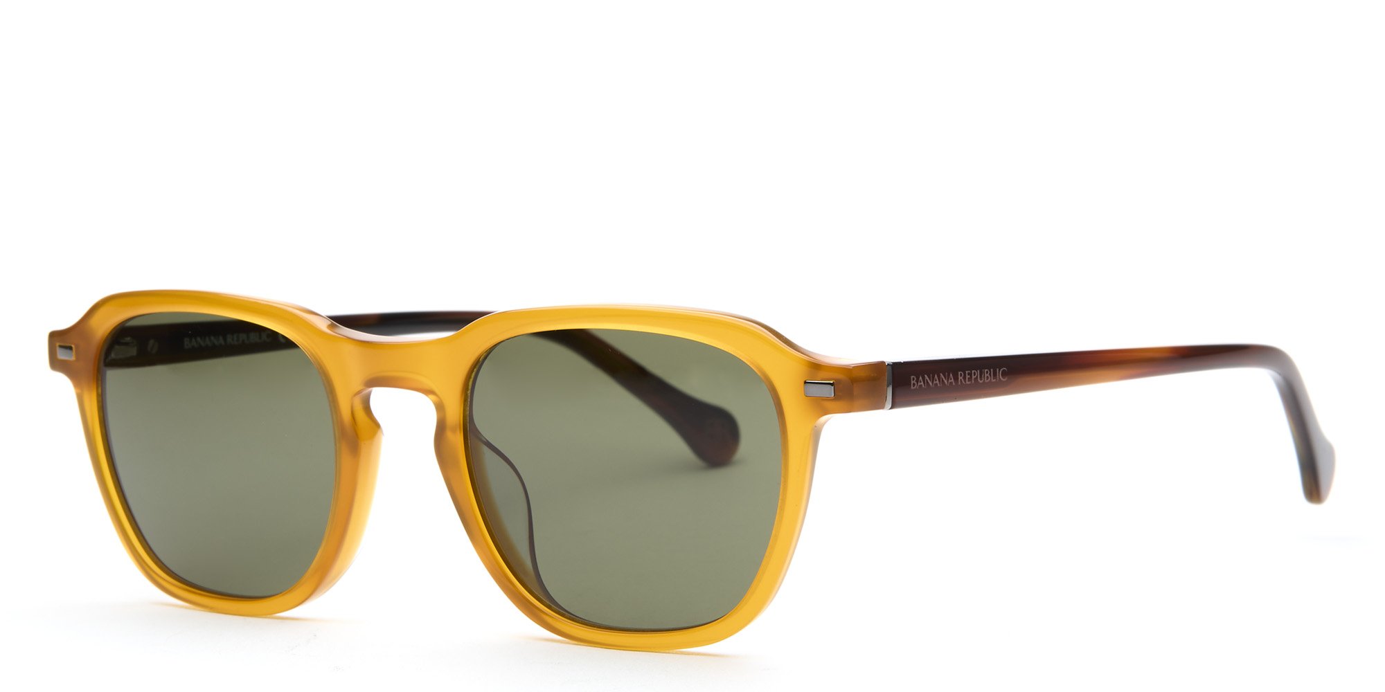 In the vintage inspired Ervine, Banana Republic offers high quality sunglasses with retro appeal and plenty of panache. Sturdy temples feature exceptionally durable barrel hinges. Soft, rounded edges give these ful -rim eyeglasses a wayfare inspired look, with rivets on the end pieces for added appeal. The keyhole style bridge distributes the weight of the glasses comfortably on the face, a nice feature for the wearer with a wider nose. Please note these frames fit large and are best suited to those with wider faces.
