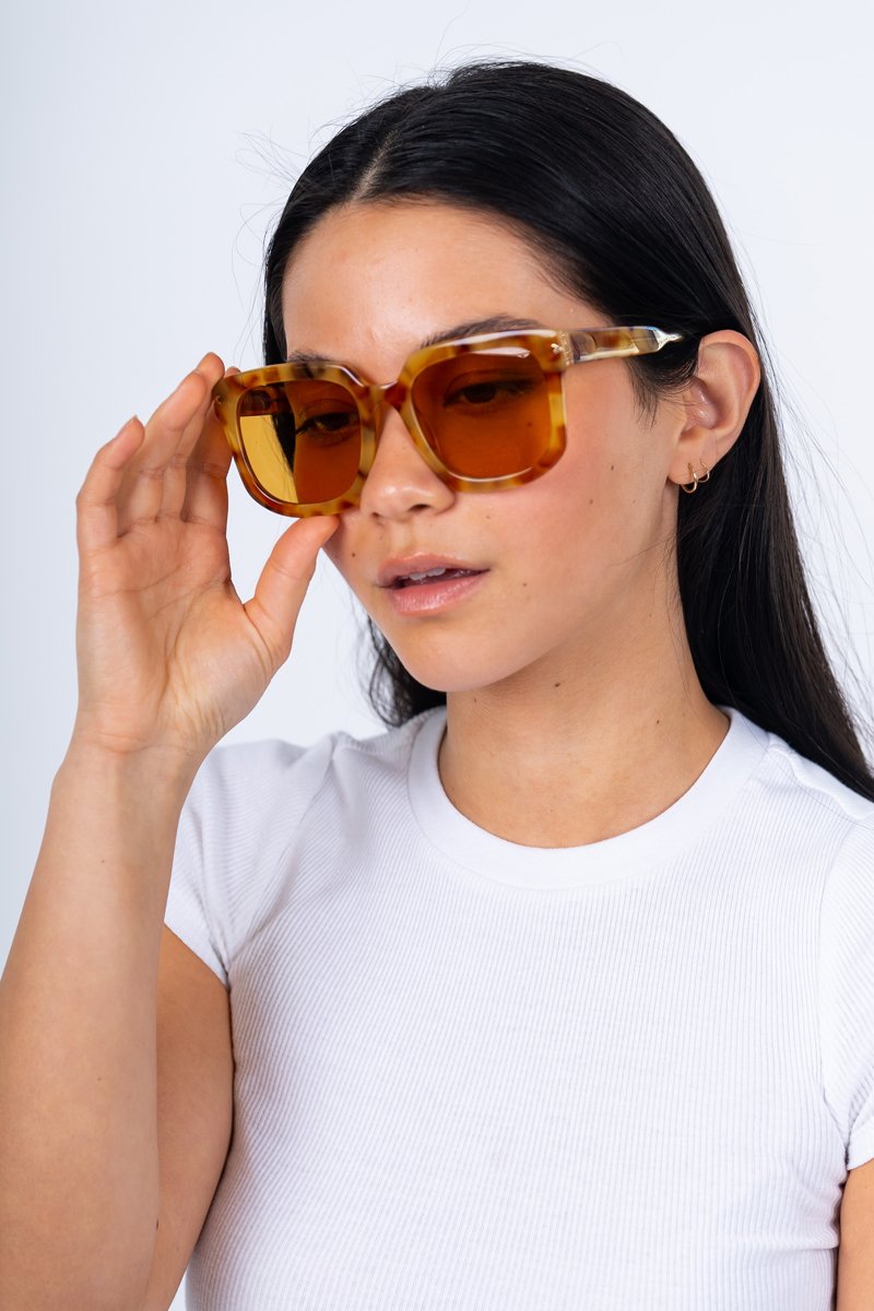 Dare to stand out wearing the Cathi sunglasses. Lightweight but sturdy acetate is favored for its versatility, allowing for the chunky silhouette and bold styling that set these frames apart. For comfort and style, the temples are wide at the brow end and narrow towards the tips, which wrap securely around the back of the ear. The KITS signature at the endpoints adds designer appeal to these Cathi frames. Please note these frames fit large and are best suited to those with wider faces.