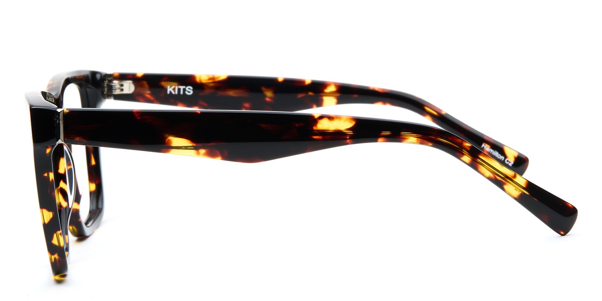 KITS puts a modern spin on a vintage wingtip style in the on trend Hamilton eyeglasses. The rectangular frames come in a durable, impact resistant acetate that’s lightweight and comfortable. The wire core temples widen slightly at the tips for added stability behind the ears. Adorned with double-rivet details at the endpoints, these Hamilton glasses symbolize quality and innovation. Please note these frames fit large and are best suited to those with wider faces.