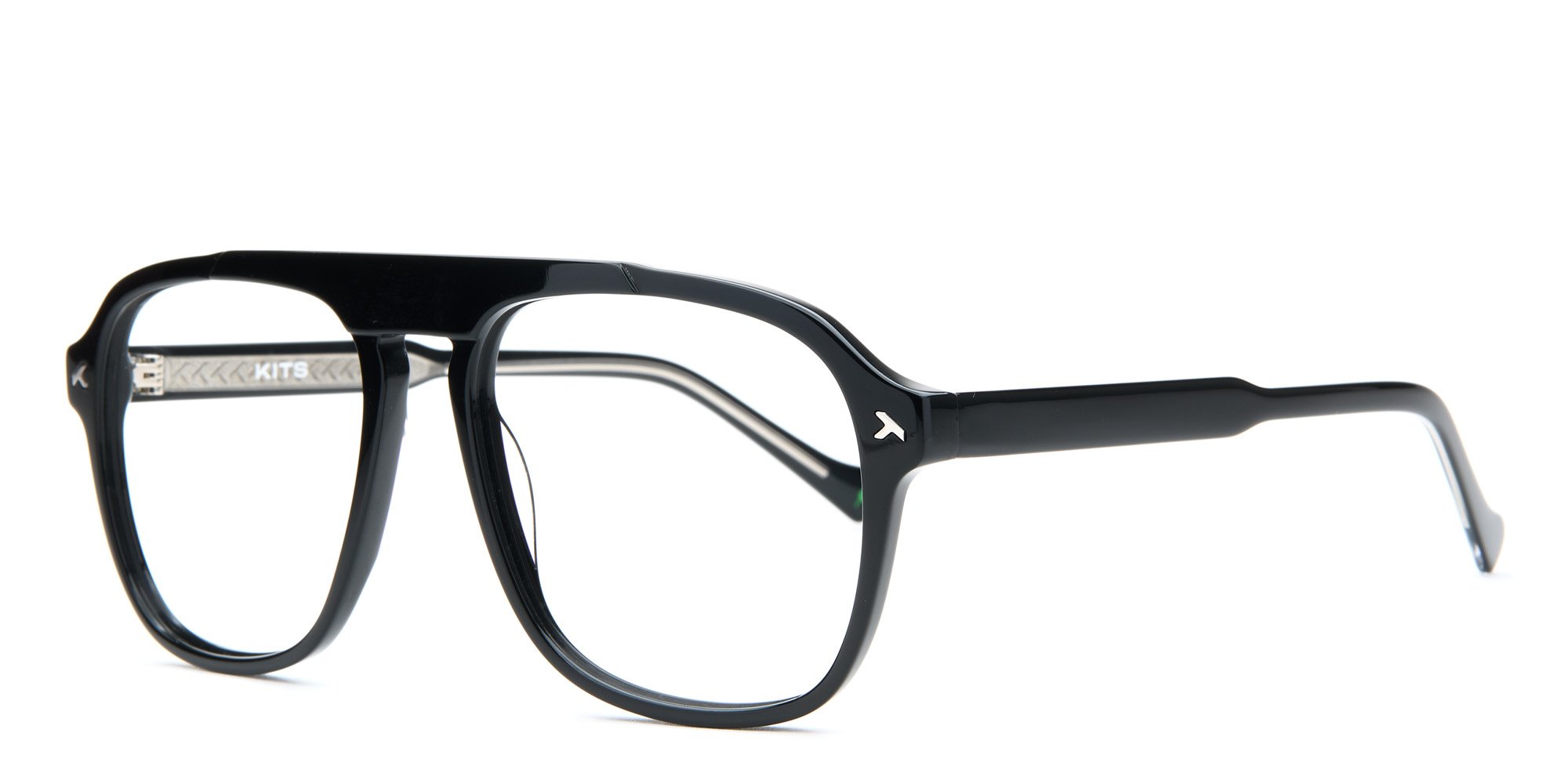 KITS takes a classic silhouette to new heights in these vintage inspired Lefty eyeglasses for men. The audacious aviator style frames are made in a lightweight material thats sturdy enough to take on the most active lifestyle. The sleek temples curve inward gently for added stability behind the ears. Sturdy barrel hinges hold their initial balance and adjustment for a secure fit. Join the geek chic revolution wearing these retro leaning Lefty glasses from KITS. Please note these frames fit large and are best suited to those with wider faces.