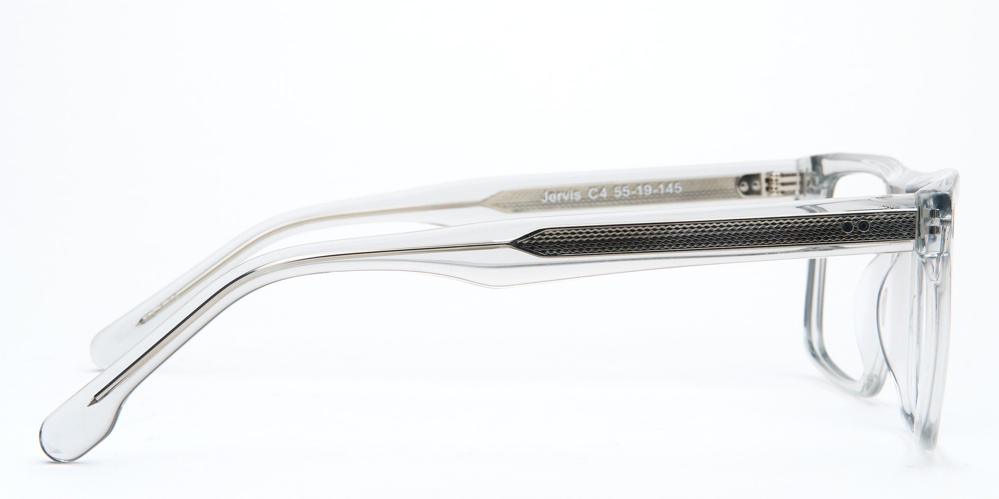 Amp up your style game wearing the Jervis eyeglasses. The man who doesnt want to overthink his style choices will enjoy wearing this universally flattering full rim rectangular design. Complete with the rivets at the temples and hinge, these durable and rugged glasses feature shark fin temples for a snug fit. Crafted in lightweight but sturdy acetate, the glasses promise long years of comfortable wear with easy to repair conventional hinges.