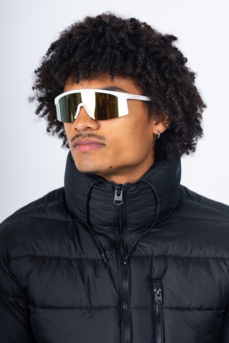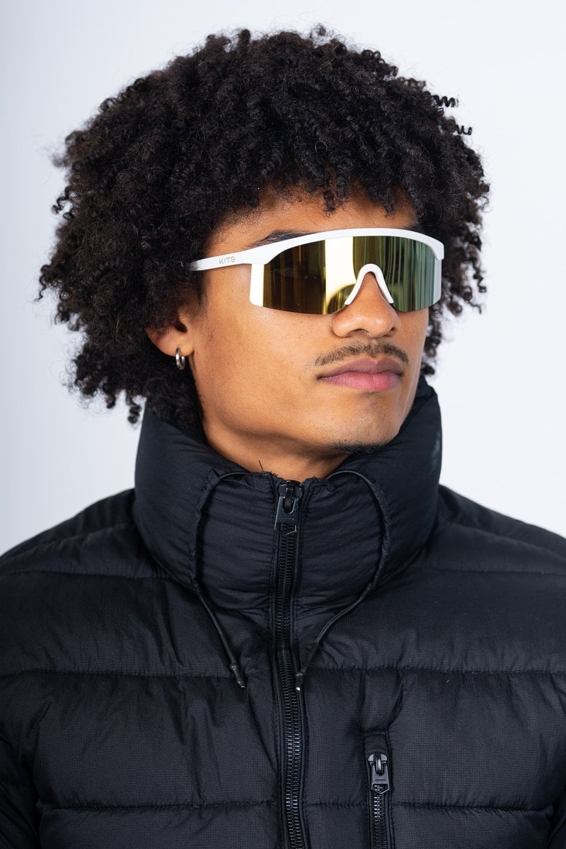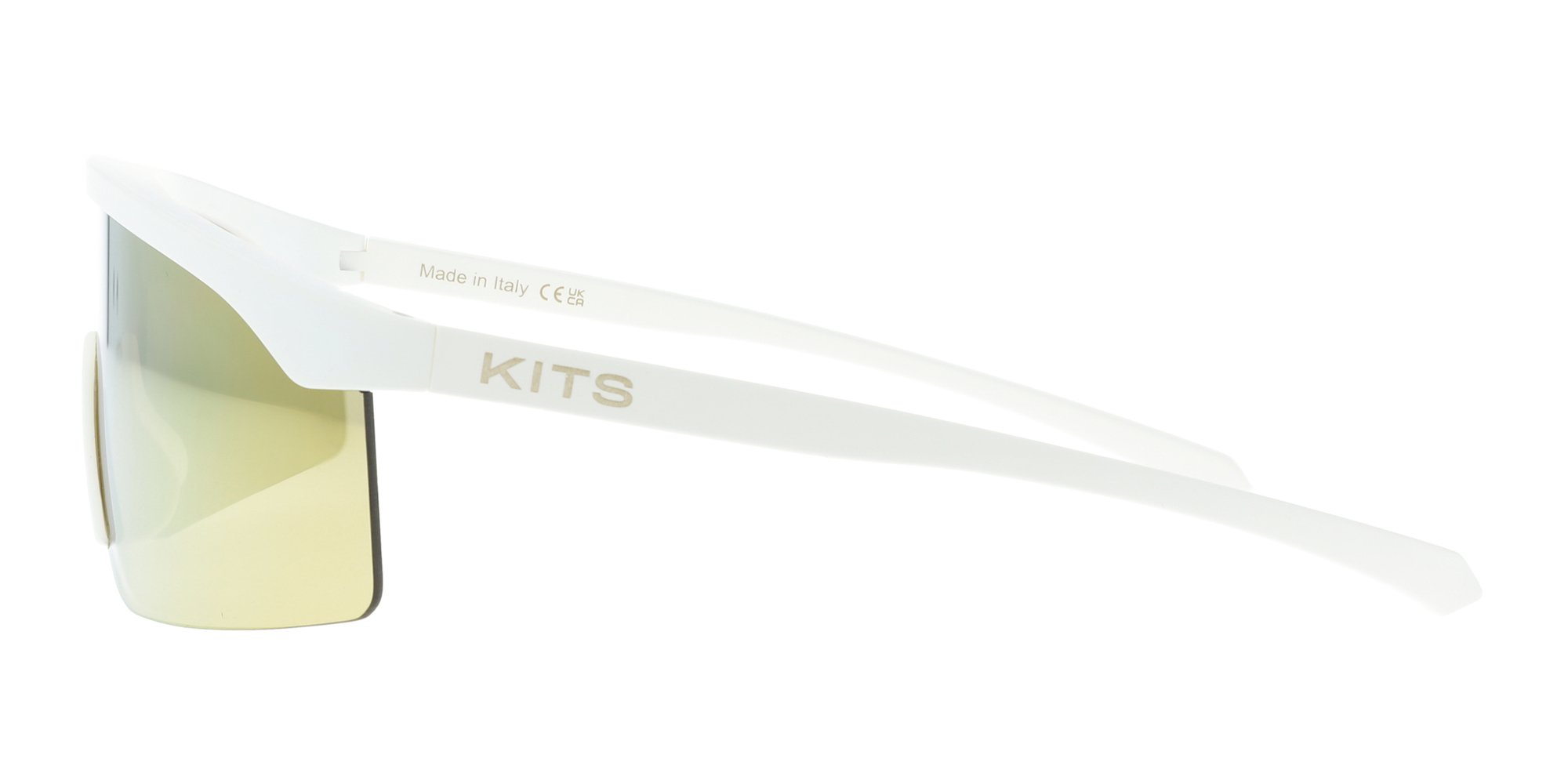 Champagne Powder is a limited edition frame in the DNR X KITS Après collection. From patio bar crawls to sunny bike rides to endless hours of beach volleyball, these stylish, durable, lightweight, and comfy frames are what you need to get the party started and kick off the Summer season with a bang. Champagne Powder has a matte white frame with a gold mirror lens. Made in Italy in collaboration with Rewop Milano.