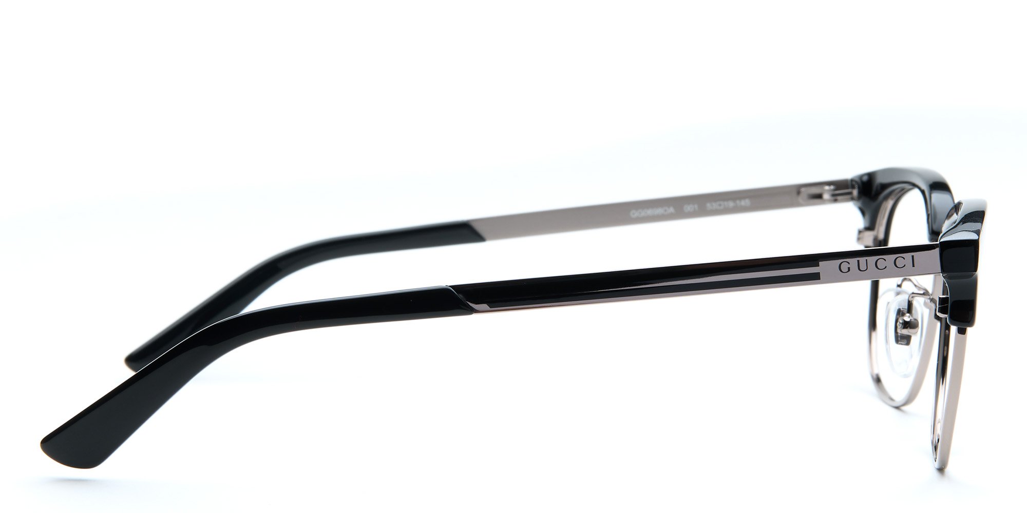 Gucci GG0698OA eyeglasses speak to the wearer who enjoys a vintage look. Pairing 50s-inspired lines and impeccable detailing, Gucci achieves the same luxurious design standards in these glasses as those that have placed this celebrated design house at the forefront of the fashion world for over a century. The metal full rims are strong and durable, and the Clubmaster style browline adds visual heft and appeal. Embrace nostalgia and look smart in these bold Gucci eyeglasses, available in an array of finishes, with Gucci branding at each temple.