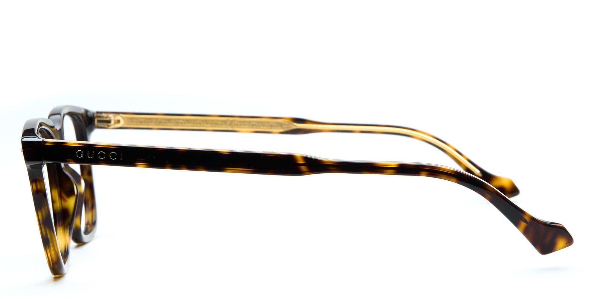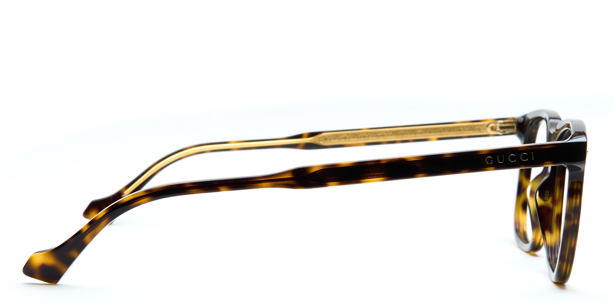 Be the fashion forward professional wearing the Gucci GG0737O eyeglasses. The timeless rectangular design gets a smart update with an unusual browline and pronounced wingtips for statement making style. The signature logo near the hinge complements the rivets on the endpoints for a cohesive look. The lustrous and lightweight performance plastic construction and easy to repair conventional hinges offer impressive durability. Complete your wardrobe wearing these refined eyeglasses from Gucci.